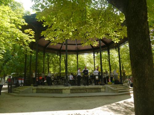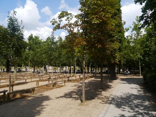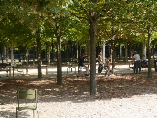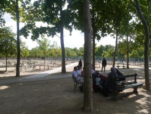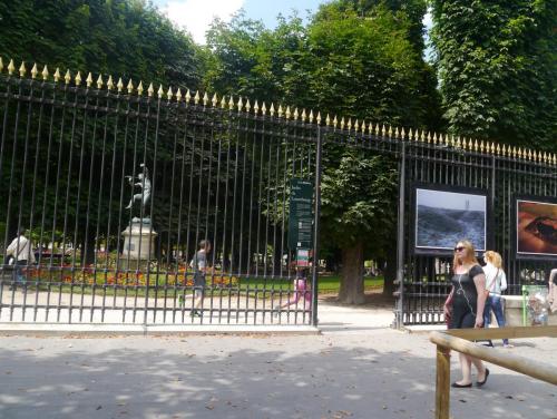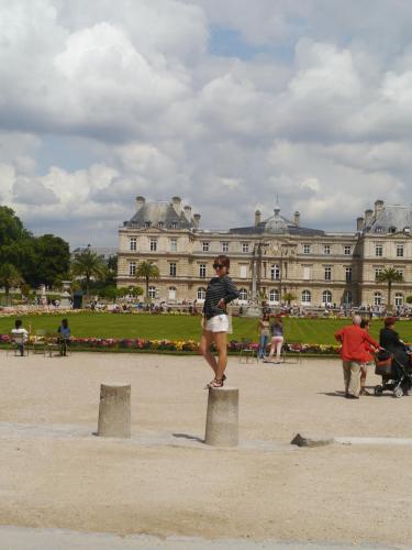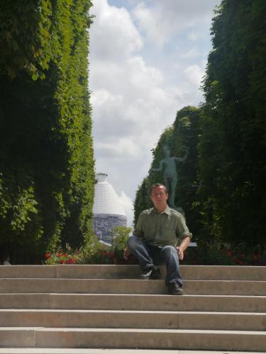 Вход в Люксембургский сад свободный, режим работы: 8:15 – 16:45 (с ноября по март) и 7:30 – 21:45 (с апреля по октябрь). Войти в сад можно с разных сторон, мы входили где-то сбоку. Время прогулки по саду - примерно 1 час 10 минут . Круговой маршрут. Немного пройдя, чуть-чуть отдохнули на таких стульчиках ради интереса... Потом по аллее вышли в центральную часть парка - с прудом (восьмиугольным бассейном с фонтаном), пальмами в кадках, на заднем плане - знаменитая башня Монпарнас. Здесь также люди сидят-отдыхают на стульчиках, в основном - старики, дамы и дети, очевидно, что некоторые дамы ещё и загорают - погода соответствующая :smile: Дети пускают кораблики, которые можно брать напрокат... Это я опять позирую. Хороший мальчик! :i-m_so_h: :biggrin: Если присмотреться, в саду действительно полно всяких статуй :biggrin: Выходим в "спортивную" часть сада. Что-то среднее между фехтованием и восточными единоборствами. Как-то я особо не приглядывался к их движениям... В районе теннисного корта, в тени деревьв нашёл себе пристанище арабо-мусульмано-"лягушачий" отряд :biggrin: Занятная сцена героев древнегреческой мифологии :biggrin: Кстати, в северо-западной части сада мы посетили платный туалет (довольно хороший). Больше нигде не попадалось (да больше нам и не надо было).