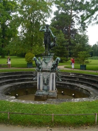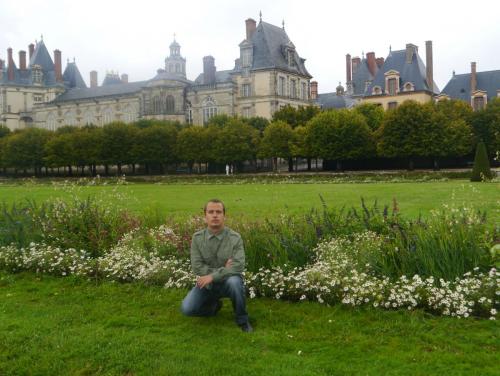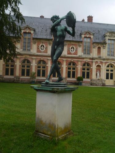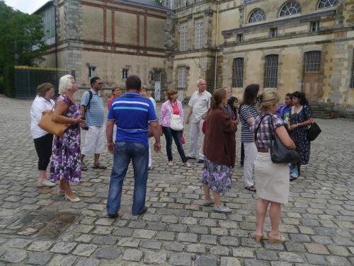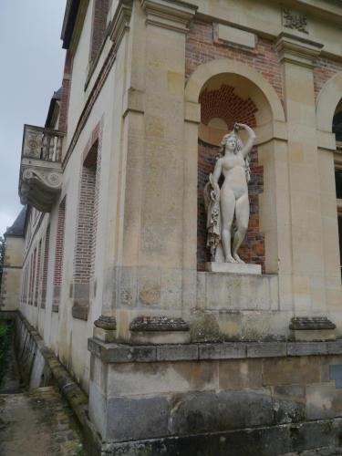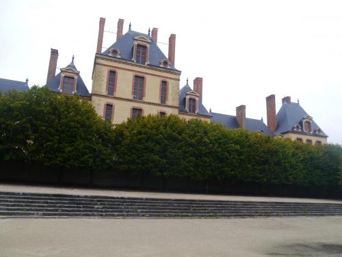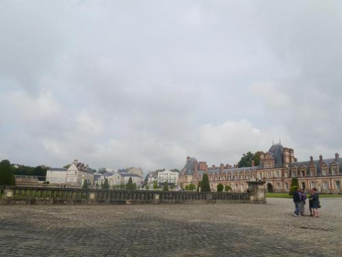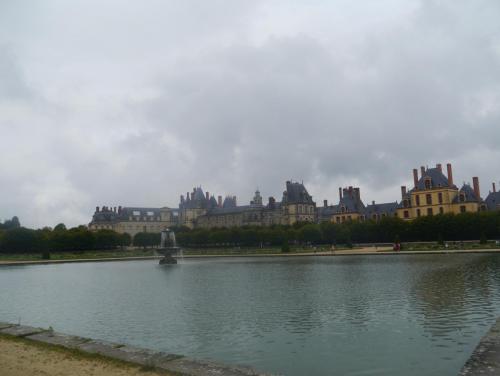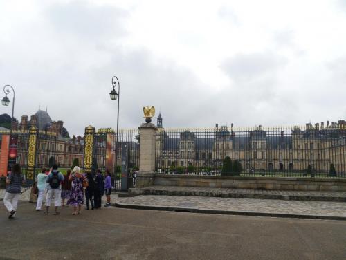 В настоящее время каждый гость дворца Фонтенбло может воочию увидеть роскошное убранство многочисленных комнат, выполненных в различных стилях; картины, принадлежавшие кистям знаменитых художников; различные предметы искусства, мебель, выполненную из драгоценных пород дерева и инкрустированную натуральными камнями. Более того, Фонтенбло- это комплекс, который состоит из дворца, дворов, садово-паркового комплекса. В садово-парковый комплекс входят Английский сад, Грот Сосновой рощи, Большой Партер, созданный в честь богини охоты Сад Дианы и украшающий его великолепный фонтан, многочисленные клумбы, разбитые в версальском стиле. Также, на территории находятся музеи Военного искусства и истории, Национальный музей тюрем, национальный музей Наполеона, китайский музей Императрицы, художественная галерея и галерея мебели. А тенистый парк удивит вас искусственным каналом, украшенным, неимоверно красивыми статуями древних богинь и великолепными мраморными мостиками. С лестницы дворца вид в обратном направлении...Как видим, помимо нас, тут опять какая-то организованная группа китайских (азиатских - во всяком случае) туристов... Как и предполагалась, экскурсия во дворец не состоялась из-за того самого потопа, о котором нас предупреждали. Деньги за дворец вернули. Мадам гид Ольга провела экскурсию вокруг дворца (по часовой стрелке), а в парковой части мы получили немного свободного времени для осмотра и фотосессии. Довольно короткое мероприятие – 1,5 часа - от автобуса и до автобуса. Зато у автобуса потом ещё поторчали. Итого – примерно без пятнадцати десять приехали и после половины двенадцатого мы уже двинулись в обратном направлении. Но и в нашем составе не всё так просто! Если смотреть людей справа, то на заднем плане явно видна компания чёрненьких - это с ними мы вчера возвращались в Париж на автобусе из Версаля (возможно, не только с ними, и вообще, если я не путаю). А если смотреть слева - самый крайний из мужчин с левой стороны - это наш очень примечательный боец - бенгалец Харун М., о котором я уже упоминал в своём отзыве за 23 число. Как видим, он с этими людьми (мужчина, женщина и две девушки, видимо, дочери) по внешности схож. Из чего делаем вывод: скорее всего, их с Харуном М. объединяет их общая Родина - Индия (хотя достаточно давно наш боец живёт в Москве). А раз такое дело - договориться с кем надо и оём надо для нашего бойца-бенгальца - не вопрос! :smile: Фонтан «Диана с косулей», 1603 г. и 1648 г. В саду Дианы - за левым крылом двора Белой Лошади (главного фасада дворца-замка)... А теперь выходим в район Большого партера ("большого сада" , "королевского сада"), Английского сада и Карпового пруда...в общем, в том направлени! :i-m_so_h: