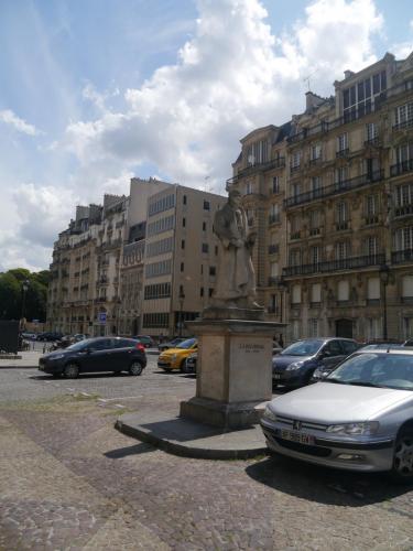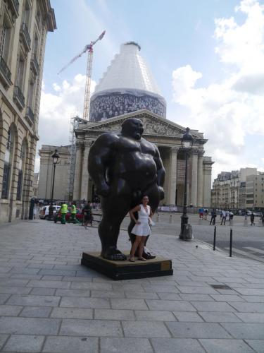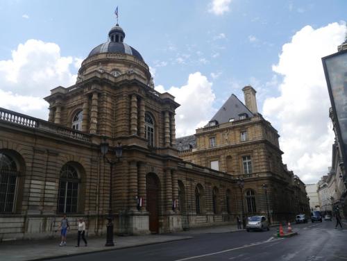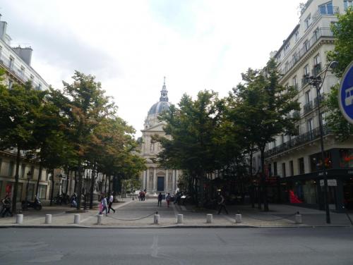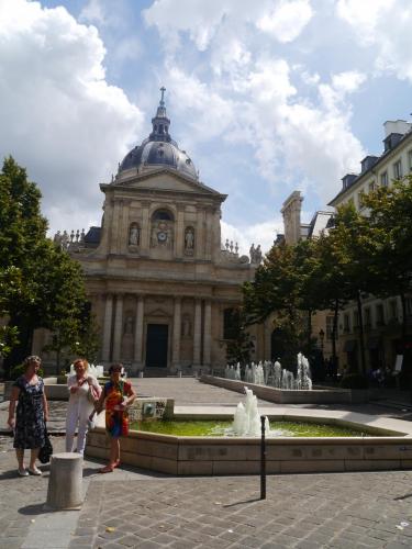 После выхода из Люксембургского сада попадаем на улицу Вожирар (Rue de Vaugirard). Люксембургский дворец (Palais du Luxembourg) 15/15 Rue de Vaugirard, 75006 Paris В общем тот же самый дворец, в котором заседает Сенат "лягушатников", только этот корпус выходит на улицу и развернут фасадом на 180% по сравнению с тем, который мы видели. Кстати, на улице Вожирар (19, rue de Vaugirard) есть Музей Люксембургского дворца, где периодически проводятся выставки. А если пойти далее по Вожирар, то можно было бы выйти к башне Монпарнас. И первоначально мы даже так и пошли, но чего-то мне как рулевому не понравилось, и мы сменили направление. Не хотелось достопримечательностей, шоппинг также не интересовал, хотелось побродить "куда глаза глядят" :smile: Проходя мимо столиков, выставляемых различными кафе прямо на улицу, мать отметила, что парижане любят пить чистую воду, которую в стаканах так часто можно увидеть на столах. Просто дело в том, что вода как и хлеб в парижских кафе бесплатны. И если нет бесплатной воды (водопроводной, но чистой), то в меню кафе должны прямо об этом указывать. Традиция пошла то ли с времён "лягушачих" королей, то ли от самого Наполеона: тогда обязали ушлых трактирщиков любого странника спасать кружкой воды и сухой корочкой. На тему того, что есть бесплатного в Париже предлагаю интересующимся почитать одну статью - http://www.ice-nut.ru/france/france080.htm Довольно скоро мы оказались на уже знакомом нам с первого дня бульваре Сен-Мишель, который наряду с бульваром Сен-Жермен, является главной улицей Латинского квартала. Идёт по границе V и VI округов Парижа. Бульвар берёт своё начало от моста Сен-Мишель на реке Сена и площади Сен-Мишель, пересекает бульвар Сен-Жермен, идет вдоль Сорбонны, Люксембургского Сада и заканчивается на площади Камиля Жулена вблизи от железнодорожной станции Порт-Ройаль и проспекта Обсерватории. Сокращенное название: Бульмиш (Boul’Mich’). Итак, переходим дорогу к знаменитой Сорбонне (туда глядели глаза :biggrin: )... И тут без десяти два по местному мы неожиданно встречаем наших бойцов (трёх мушкетёров :biggrin: Хотя их было даже чуть побольше: кажется, там ещё был наш Валерий). При этом я даже их не сразу заметил, нацеливая объектив фотоаппарата на здание. Наши бойцы так вяло и неуверенно брели по округе, что напомнили мне любителей поплескаться около берега водоёма, с которым они на "Вы". Тоже самое, только в условиях незнакомого города. Но для меня-то это как раз самая прелесть забрести куда-нибудь - давняя привычка! :biggrin: Поэтому смелей вперёд! :smile: Обойдя здание Сорбонны по периметру корпуса... Выходим к очередному знакомому нам с первого дня месту - Пантеону (усыпальнице великих людей Франции) и статуе Монгола, "Монгольская стать" («Mongolian (standing position)». И там же, немного правее и вперёд, памятник великому французскому философу, писателю, мыслителю эпохи Просвещения Жан-Жаку Руссо (1712-1778).