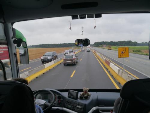 28.07.2014, понедельник, седьмой день Насколько я помню, именно к этому дню относится мой отзыв в части работы мадам гида Ольги, подготовленный мной здесь ещё 12.09.2014: «Но все же без отдельных вопросов к организации группы не обошлось. Решила наш гид однажды в Париже туристов заставить собрать до завтрака вещи и погрузить их в автобус. Причем половина группы (или больше) об этом не знала. Мы, например, точно не знали. Выходим утром из номера и видим девушек из нашей группы с сумками. Говорят: до завтрака погрузка вещей в автобус. Мы вернулись, взяли и выходим в коридор. Там видим других наших налегке, передаем им полученную информацию. Их реакция: мы поднимемся за вещами, если что. И вот картина: в холле на первом этаже какая-то часть туристов с вещами шныряет, а большая часть - стоит налегке и ждет открытия ресторана отеля, на завтрак. До автобуса мы не дошли, решив последовать примеру большинства - поднялись и вещи обратно в номер занесли. Может, гиду и удобно, чтобы народ после завтрака сразу в автобус прыгнул, а вот народу - нет! Кто-то зубы чистит после завтрака, кто - еще что...». К слову, в нашем отеле проживало немало китайцев (азиатов), которые также в составе групп бороздили по просторам Парижа и его окрестностям (в Чехии они тоже нам встречались), и даже здоровались с нами первыми на английском (по крайней мере, некоторые) :smile: Мой план на день: посещение дворца Фонтенбло – прогулка по Парижу в свободное время. У других по-разному, например, прощальный ужин в Париже, организованный мадам гид Ольгой. :popcorm1: Относительно посещения дворца в одноимённом городе – для меня это не только приобщение к прекрасному, но и возможность посмотреть на Францию. Ночёвка в Валансьёне, Париж, Версаль, Фонтенбло – худо-бедно, но уже с полным правом можно говорить о посещении Франции, а не только Парижа, что для меня немаловажно! День с утра задался серым: ночью прошёл ливень. Мадам гид Ольга желающих отправиться в Фонтенбло предупредила о возможной отмене экскурсии по дворцу: его за ночь подтопило, в связи с восстановительными работами дворец могут и не открыть…Об этом предстоит узнать на месте, поехали! :i-m_so_h: По дороге к прекрасному :biggrin: