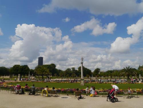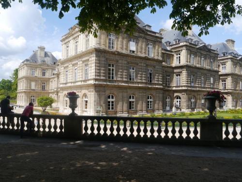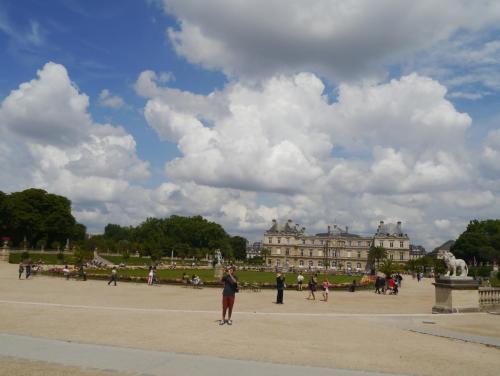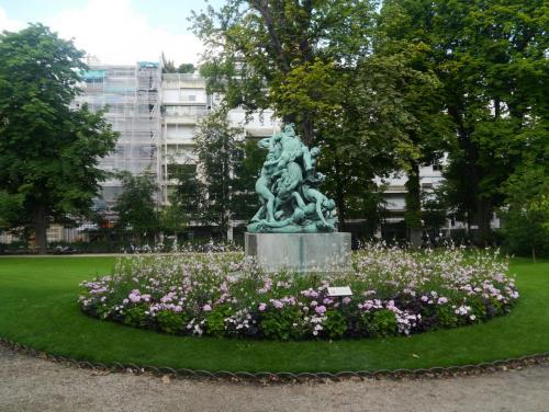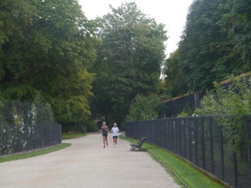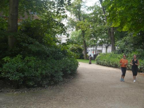 А дальше, дальше - Люксембургский сад, около которого нас высаживают для дальнейшего "свободного плавания". Разумеется, не случайно - мало кто откажется от посещения такой красивой достопримечательности. И лично мы - тоже не исключение. Надпись на скульптуре со львом гласит: "Национальная оборона 1870-1871". Скульптура посвящена франко-прусской войне указанного периода, когда "лягушатники" опозорились на весь своим поражением в войне, потеряв Эльзас и Лотарингию, а также обязавшись выплатить контрибуцию в размере 5 млрд франков победителю. Даже часть своего Парижа успели продуть к моменту окончания войны (пруссаки там два дня успели побыть, пока не были выведены оттуда благодаря подписанию предварительного мирного договора). В следующем веке "лягушатники" опозорятся ещё больше... А у нас наконец-то появилась возможность побывать в этом чудесном месте...Кстати, уже отсюда видно, что местные здесь любят делать пробежки :i-m_so_h: Итак, Люксембургский сад. Сад был разбит в 1611 либо 1612 году по заказу итальянки Марии Медичи, вдовы короля Генриха IV , вокруг загородного дворца, возводившегося в то время далеко за пределами города. Для этого она приобрела у герцога Люксембургского (вот откуда его название!) земельный участок в пригороде Парижа. Архитектор дворца Саломон де Брюс использовал в качестве основы проект флорентийского дворца Паллацо Питти в котором выросла будущая королева Франции. Несмотря на то, что в XIX cтолетии южное крыло дворца и прилегающий к нему сад подверглись значительным изменениям, Люксембургский дворец сохранил свой лёгкий итальянский флёр, который ещё больше подчёркивают выращенные в кадках пальмы (это мы ещё увидим). В настоящее время Люксембургский сад - это дворцово -парковый ансамбль, известная достопримечательность города. Расположен в Латинском квартале, по праву считается "лёгкими" Левого берега Парижа: бывший королевский, а ныне государственный дворцовый парк занимает территорию в 26 гектаров. Люксембургский сад с севера ограничен одноимённым дворцом и "Малым дворцом" (Petit Palais), который является официальной резиденцией президента Сената, оранжереей и Люксембургским музеем (Musée du Luxembourg), а с востока — Парижской высшей национальной школой горного дела (École des Mines). Сад можно условно разделить на две части: вокруг дворца расположены разбитые ещё в XVII в. в строго геометрическом порядке и в классическом французском стиле клумбы и террасы, в восточной и юго-восточной части возникла более поздняя парковая зона в английском стиле. Сад знаменит не только своими зелёными террасами и цветниками, но и настоящими произведениями искусства. На его территории расположены 106 скульптур (статуи, посвящённые сценам и героям древнегреческой мифологии, 20 статуй европейских королев и знаменитых женщин, статуи других известных личностей, двухметровая статуя Свободы), фонтаны (фонтан Медичи, фонтан Обсерватории, фонтан Делакруа) и несколько зданий. Летом этот сад, с его строго распланированными лужайками, красочными цветниками, прекрасными деревьями (некоторые из них растут в гигантских горшках и на зиму переносятся в закрытое помещение) привлекает толпы народа, а самое популярное тенистое место, куда все стремятся, – это окруженный платанами фонтан Марии Медичи в северо-восточном углу сада. Большинство лужаек сада не имеет оград, 