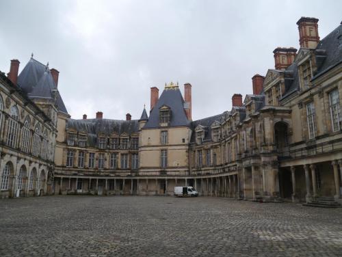 Въезжаем в город Фонтенбло: Такую "достопримечательность" можно увидеть только в моей коллекции фото! :declare2: Со слов мадам гида Ольги, это здание раньше принадлежало воинской части "лягушатников", когда ещё во Франции по призыву служили (до 1997 года). Если в такой высотке размещали срочников, то о боеспособности здесь явно не сильно заботились... :mda: Итак, Фонтенбло (Fontainebleau) — город в 60 км к юго-востоку от Парижа, известный в первую очередь великолепным ренессансным дворцом, резиденцией многих правителей Франции. Построенный в стиле итальянского маньеризма, дворец больше всего напоминает ряд затейливых хрустальных фужеров разной высоты и формы: приземистые пузатенькие пристройки — тяжёлые бокалы для виски, элегантные широкие флигели — основательные сосуды для красного вина, а изящные стройные башенки между ними — легкомысленные фужеры для шампанского. Да и само название города весьма кокетливо: «fontaine bleau» означает «прекрасный фонтан». Жители Фонтенбло называют себя «les bellifontains» (беллифонтенцы), и при описании местных явлений также рекомендуется использовать прилагательное «bellifontain». Дворец окружает замечательный садово-парковый комплекс, а его, в свою очередь, обширный лес. Кроме этого, Фонтенбло — одна из конных столиц Франции: здесь расположен ипподром и проводятся крупнейшие международные соревнования по всем дисциплинам конного спорта. Дворец Фонтенбло занимает одно из первых мест в истории Франции и всей Европы: с XII по XIX века в общей сложности здесь побывало 34 французских правителя - от Людовика VII Молодого (превратившего в 1137 году небольшой охотничий дом в свою загородную резиденцию.) до Наполеона III (включая Наполеона I Бонапарта, который использовал дворец как свою официальную загородную резиденцию, а в 1814 году здесь же отрёкся от престола). С каждым веком короли расширяли свои покои, пристраивая к существующим зданиям новые галереи, апартаменты, залы. Так дворец превратился в огромную, наполненную бесценными сокровищами шкатулку. Дворец служил французским правителям на протяжении семи веков, и только с крахом Империи в 1870 году навсегда перестал выполнять свои исторические функции и был превращен в музей. В 1974 году на саммите руководителей стран "шестерки" (Германия, Франция, Италия, Бельгия, Люксембург, Нидерланды), проходящем в Фонтенбло, было принято решение о проведении регулярных встреч глав государств и правительств стран - членов сообществ. 1974 год считается датой образования Европейского Совета – высшего политического органа Евросоюза.
