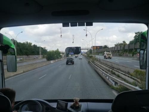 Ехать обратно мы быстро явно не собирались: во-первых, некоторые бойцы женского пола по возвращению захотели в туалет; во-вторых, некоторые бойцы мужского пола, включая водителей, захотели покурить; в-третьих, наш командир - мадам гид Ольга захотела устроить чаепитие. Поэтому-то и пришлось "набрать сил перед дорожкой" :biggrin: Вид на "лягушатников" из окна автобуса. Итак, вынесли стол из автобуса, организовали чай-перекур. И здесь произошёл примечательный случай - единственный за весь наш дальний поход "за тридевять земель" - матери месье кинодраматурга Теплыгина Алексея разрешили сходить в автобусный туалет! Время исключительного случая пробило! :smile: Чего-то нам говорили, если не путаю, что вместимость туалета автобуса всего 5 литров, хотя я видел в сети информацию, что вместимость туалетов в автобусах подобного плана около 20 литров! Ну да ладно. Тем не менее, другим нуждающимся пришлось идти до ближайшего кафе и заплатить за свои потребности. Ага, а то если так все полезут в автобусе делать свои дела - так это целый потоп произойдет - КОШМАР! :biggrin: Всё для блага бойца, туриста и человека! :biggrin: Итак, покидаем Фонтенбло, оказавшимся не очень приветливым к нам, возвращаемся в Париж. Лучшее, конечно, впереди! :dance4: