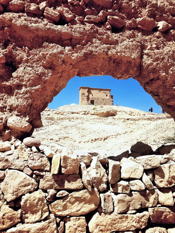 На самой "макушке" - глинобитная сторожевая башня... Кто-то выложил камушки... Чуть дальше норвежские пирамидки... Ну, что ж, начинаем спускаться... Как в музее побывали... Входили через какой-то жилой дом, а выходим - через ворота...