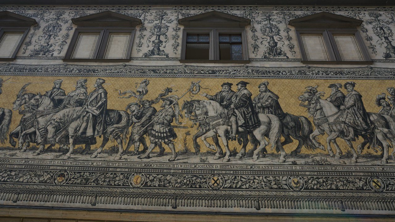 17. Дрезден. Шествие курфюстов. Мозаичная картина одно из немногих произведение искусств, что осталось целым. Восстановленная буквально по кирпичику Фрауэнкирхе. Цвингер и купальня нимф. Извините без вот этой нимфы фото нет - все с ней)))