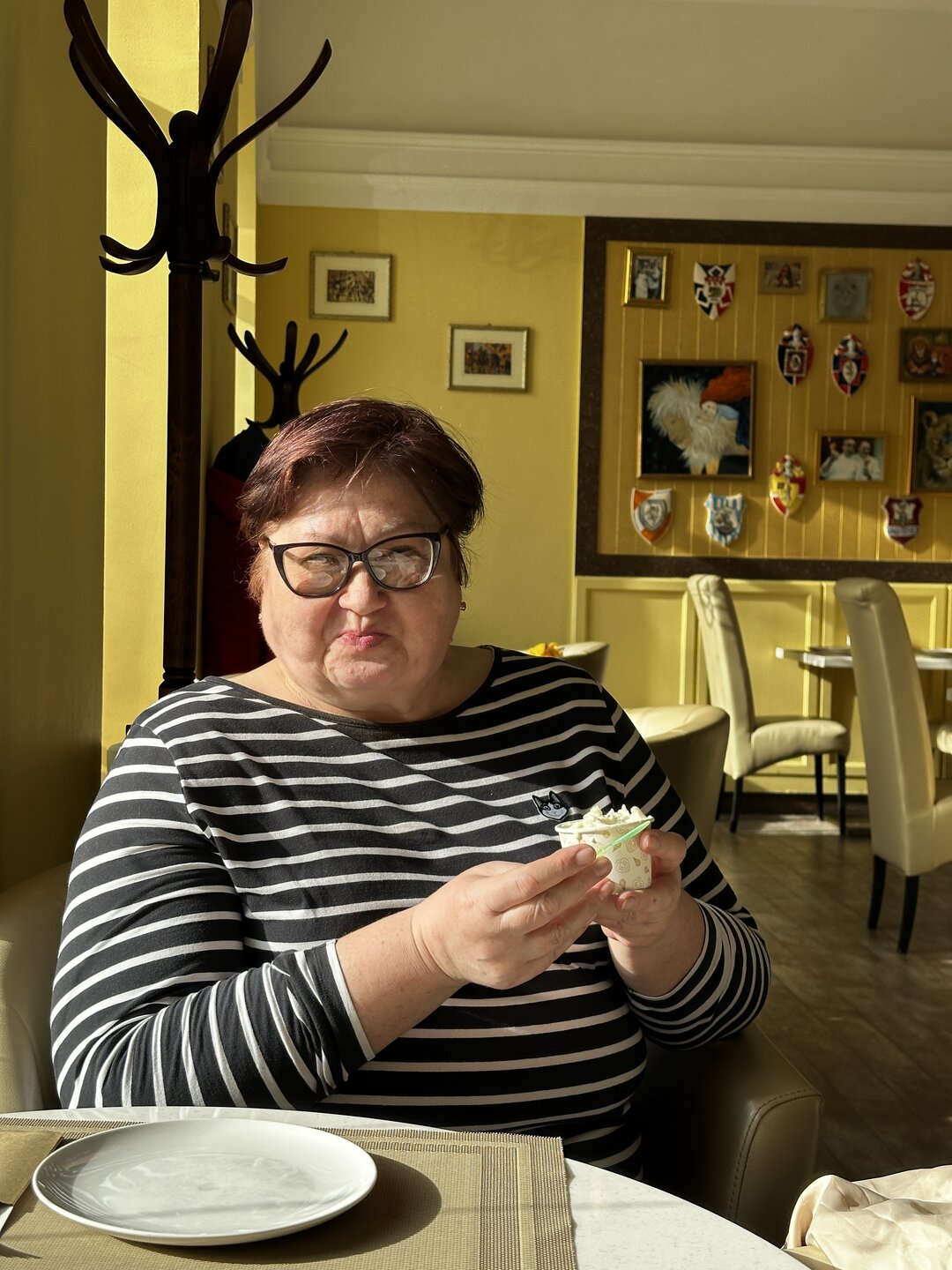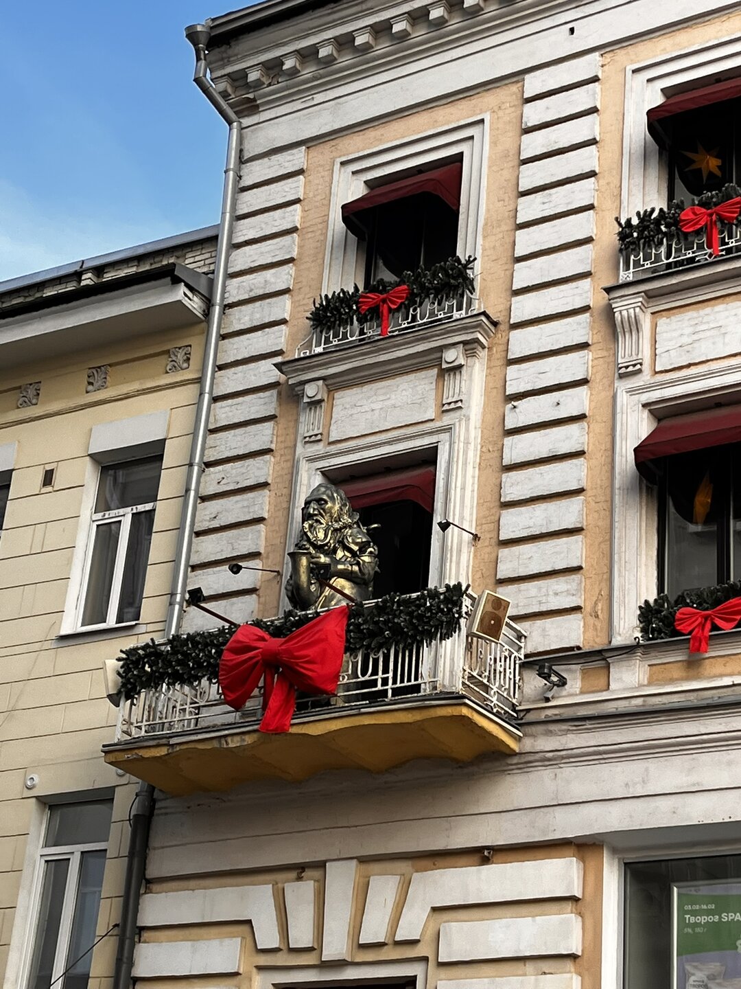 21. Вчера наконец-то получила визу.Хотя в нынешних условиях, скорее УЖЕ получила. Пугали вообще 70 дней + .Дали не намного.В наших условиях обычный срок- 15 суток))).😂Как и многим, почему-то невесть в чём провинившимся россянам. Слава богу дали! Но...есть нюанс- думаю это был мой последний раз, когда я её делала.Ну не готова я к таким потрясениям- ловля слота, сумма денег, всё более растущая у тебя на счёте( спасибо родным и хорошо знакомым с хорошей зарплатой).На минуточку виза сейчас стоит 14000,если поймал бот за тебя плюсуйте ещё 10000.Скажите это жалкие копейки по сравнению с удовольствием видеть italiano vero? Ну как сказать...есть ещё и другие города и страны, которые хочется увидеть. Погодка радовала.И вместе с тем задаёшься вопросом, как правильно одеться?Посмотрела на москвичей- они тоже видимо в недоумении.В результате поехала в ветровке, но предусмотрительно навязала шарф, взяла беретку и перчатки - на обратном пути очень выручили))).Ночи у нас морозные, чай не май месяц! Сколько не езжу в Альмавиву, а наверное топографический кретинизм у меня ,- и явно прогрессирует🤣- хорошо памятник Ленина как ориентир стоит на моём пути.( Просто выходов с метро Октябрьская три- вот с кольцевой выходить не очень удобно, ориентируемя на оранжевую ветку- поэтому надо переходить и тогда всё просто))). Встретились с Машей и рещили побродить немного- ну так шагов на 17800))). Валера, подтягивайся! думаю для тебя это несложно - да и разница в возрасте 20 лет должна ж быть форой. Вообщем, виза итальянская и отметить надо в итальянском духе- пицца с пармской ветчиной в уже не полюбившей пиццерии, а любимой 22 сантиметра. Вот не сравниваю я ее с нашим Додо))). Ребёнок доволен- мать покормит))). Ну что? полирнём мороженкой с горгонзолой? А что бы и да))).Снова обнаглели и попёрлись со своим мороженым в зал ресторана, ну негде было сесть в кафетерии))) Места не все были зарезервированы и уселись за тот столик, где сидели прошлым летом. Мальчик, просекко мороженое мне принеси, я в Италию лечу))).В этот раз рассмотрела стену, а там оказывается гербы всех регионов Италии! То тут то там ещё остались недоубранные новогодние украшательства. Вырулили на Мясницкую и пошли в сторону Лубянки.И дальше к Большому театру. Интернета не было от слова совсем.Если у нас когда его глушат при необходимости он хоть иногда проскальзывает - тут мышь не проскочит.И фото на телефоне у меня сегодня определяет три кадра на одном и том же месте- разные местоположения и районы. Ну что поделать! А архитектрура домов в центре замечательная сама по себе и без обилия ёлок. К слову на Кузнецком увидела, как разбирают сфотографированный мной вязаный шарик и стало грустно - ну пусть бы оставили и облицевали чем-то ещё! Вышли к Большому. Тут ещё декорации не разобрали, их огромное количество по Москве- не успевают видимо. В метро и мчим на Павелецкую, встречаться со старшим ребёнком.))) Мама приехала как говорила моя бабушка "обыдёнкой", то есть одним днём.А надо и внукам чего-то послать))). И у сыночки подарки себе любимой забрать.Семейный бартер.😂 Храм вдалеке заинтересовал, и вроде неудобно с людьми всё это щёлкать, ну ладно. Вдруг дочь говорит, пока ждём, давай селфи тебя делать научу? Меня рядом не будет, кто тебя сфоткает. Мать долго упиралась))) Но когда ученик превзошёл учителя...😂🤣🤣 А тут пошли прям флешбэки зеркальной крыши из 