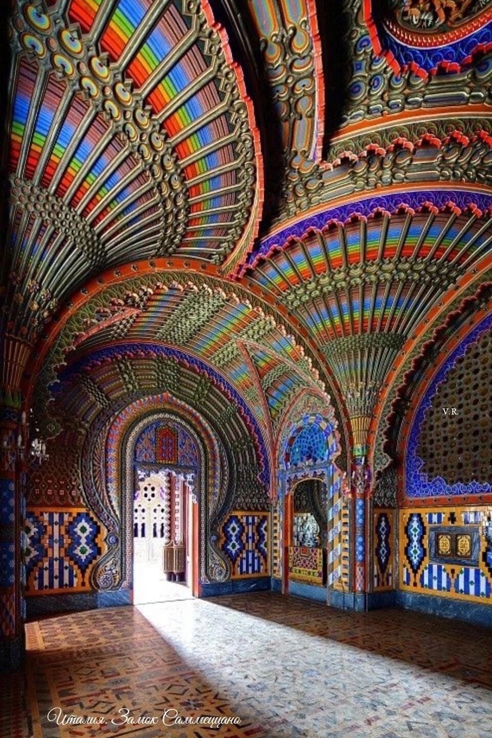 Не знала куда б это написать- тему про Италию, которую вела Татьяна Булгакова,светлая ей память, закрыта, видимо в ней давно никто не писал,все мы были вовлечены в другие итальянские темы, тему знакомств и советов. Не знаю насколько просматриваемая она сейчас? Решила написать сюда, авось кто-то и заглянет. Собственно ещё и писать наверное не о чем- музей пока на реставрации, но когда будет вдруг возможность и случится чудо (а оно зачастую случается!😇) и ТТВ возьмёт себе возможно в разработку.Короче- много слоФФФ))) Италия. Тоскана. Замок Саммеццано. Зал Павлинов Замок Саммеццано – неизвестная жемчужина Тосканы.Находится неподалёку от Флоренции, всего комнат 365! Там наверное можно день водить экскурсии и после окончания 2 мировой войны его использовали как гостиницу и место проведения многочисленных съёмок.В 1999 году продан по итогам которого владельцем Саммеццано стала итало-английская компания. Там много после было аукционов,не буду их описывать. В мае 2017 года замок оказался продан с аукциона за 14,4 миллиона евро компании из Дубая. Однако в следующем месяце продажа была оспорена судом Флоренции. Комплекс вернулся в собственность Sammezzano Castle Srl. Сейчас в замке ведутся реставрационные работы, туристы- одиночки могут тула попасть ранним утром,но когда- никогда его же откроют! Нетипичный для Италии замок в мавританском стиле поразительно красив.В переплетении больших и малых помещений замка затеряно множество ниш, потайных уголков и неожиданно просторных галерей. Окна, колонны, лабиринты коридоров… капители, арки, своды и купола – голова идет кругом. Каждая комната особенная, ни одна не похожа на другую и каждая стремится выделиться оригинальностью и изысканностью. Всего в замке 365 комнат, по количеству дней в году. Каждая из них поражает своим великолепием! Белый зал, зал лилий, зал влюблённых, зал павлинов – как яркие представители невероятного парада. Потолок Белого зала напоминает редчайшую по красоте снежинку, сама комната – кружевное свадебное платье. А зал Павлинов – это вообще рай на земле! Потрясающе пёстрая композиция один в один напоминает яркий хвост дивной птицы, а по потолку вместо перьев веерами распахиваются узоры! Замок Саммеццано был построен в 780-м году! Долгие годы этот дворец принадлежал императорам, королям и прочим представителям высшей знати. Сегодняшний облик замок имеет благодаря Фердинандо Панчиатики Ксименес д’Арагона. Став одновременно и заказчиком, и архитектором, в 1853 году он перестроил цитадель Саммерцано в мавританском стиле. Теперь его фасад напоминает знаменитый Тадж-Махал, а интерьеры с обилием декоративной лепнины восходят к образу замка Альгамбра, что в Гранаде. Маркиз, хоть и не имел специального образования, был мастером на все руки: его знали как архитектора, инженера, ботаника, библиофила и предпринимателя. Он был известным культурным меценатом, в частности, пожертвовал часть своего личного архива для создания Национальной библиотеки. Современники между тем считали его странным, многие его задумки воспринимали скептически. Именно этот невероятный человек и реконструировал замок, руководствуясь своим утончённым вкусом. Фердинандо не только финансировал стройку, но и собственноручно делал проект, а также руководил всеми работами! Так возникло чудесное творение в мавританском стиле.