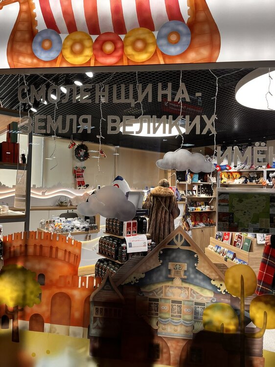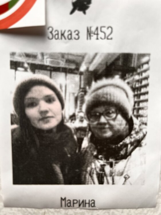 Вернулась домой, посмотрела написанное с компьютера, немного расстроило, что все загруженные видео в виде файлов- переделывать не стану- я всё равно буду делать фильмы, они туда войдут.Была в Москве, как вы уже поняли в связи с подачей на визу. Есть опасения, что придётся торопить и писать в визовый, так как число моё уже "запоздавшее"- сейчас рассматривают документы 75 дней +, а летом видимо снова выйдут на "любимые сроки"- 90 дней... Поездкой довольна- ёлки на месте, хотя есть и разочарование, я надеялась, что увижу и украшения к китайскому Новому году.Всё же мне кажется, что в прошлом году висели они к году российско-китайской дружбы, а тут 17 февраля уже их Новый год, и ничего нет...А ведь скоро будут ставить украшения к Масленице, так что думаю не будет их всё же(украшений) в этом году. И ещё побурчу - в день отъезда очень расстроил Белорусский вокзал, какой-то он грязный и на входе где стоят рамки слишком хамовитый персонал, зачастую не славяне. Я была в курсе, что телефон могут попросить показать, включить, как в аэропортах, но чтобы прогонять его в той штуке, где "светят" вещи, я с таким не сталкивалась.Скандалить было бесполезно, был шанс просто не уехать в Вязьму и что уж теперь бурчать в след уходящему поезду, но я поздно, но всё же подготовилась, вдруг понадобится ещё мне, да и ещё кому-то. Действия персонала вокзала были неправомерны! А положительных эмоций всё же больше! Всем приятных поездок и туров интересных и с приятными скидками.Я не прощаюсь - будут ещё и фильмы, да и в Москве же многие из нас бываем довольно часто- тема открыта для разговора и впечатлений. . Удивил стенд со смоленскими сувенирами в зале ожидания, хотела поинтересоваться - а вяземские пряники у вас свежие??? А их и нет- сувениры только из Смоленска. Хотя, изображённые на витрине и Юрий Никулин (родился в г.Демидов) и Юрий Гагарин( Гжатск)- всё из области, а не из Смоленска.Хотя логику тут искать.. Вот вязьмичей -Анатолия Папанова и Людмилу Касаткину не нарисовали...😒 А это поезд Иволга, курсирующая на МЦД , похожа на Ласточку, есть возможность зарядить телефон, слабенькая правда зарядочка, но я воспользовалась. Из серии "Их разыскивает полиция"))) Не, не за скандал из-за телефона.Шутка. Это мы кофе покупали в Афигаллерее на Белорусском, я начала с неё рассказ.Можно на чеке напечатать фото на память, воспользовались))).