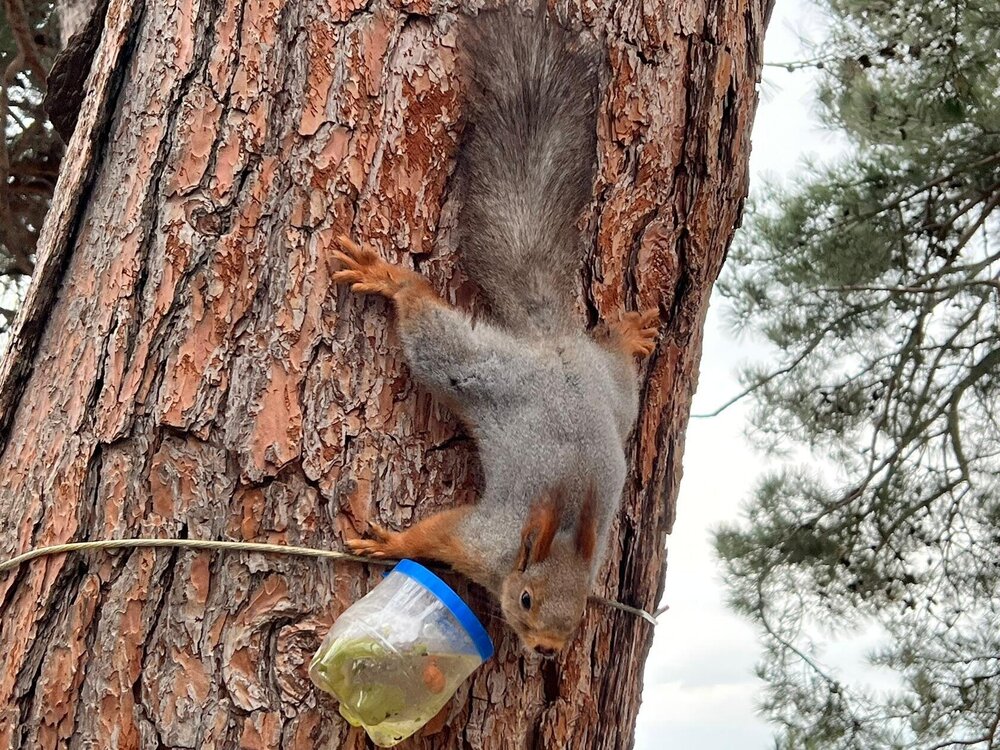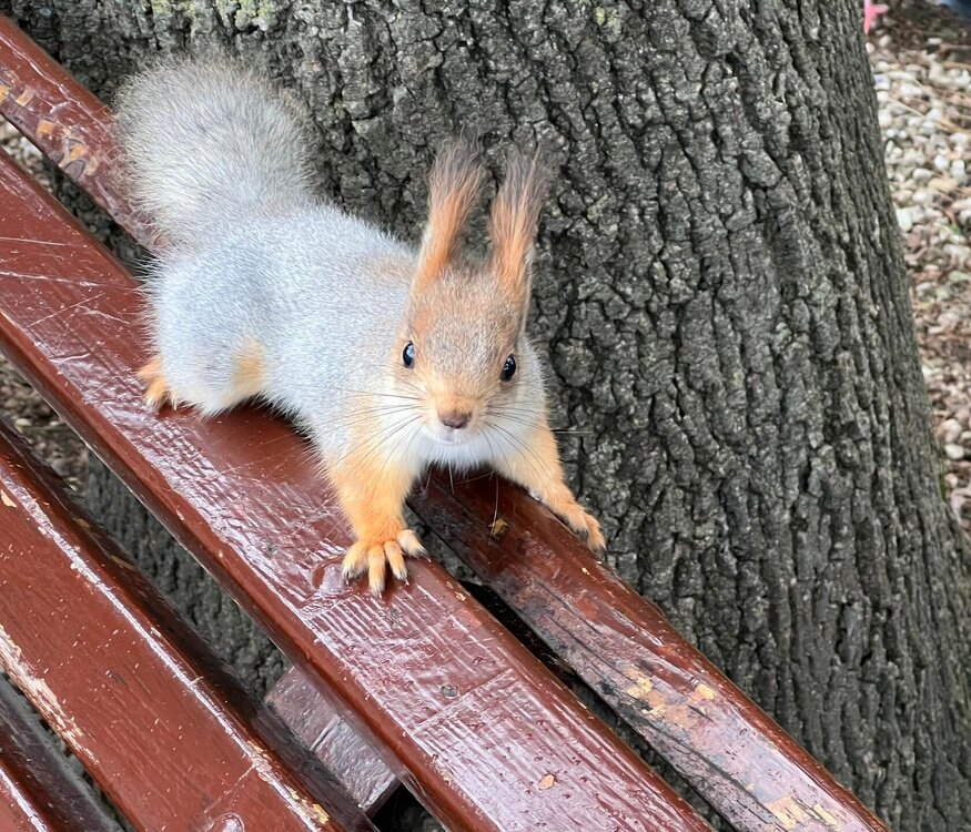 В Геленджике белок хорошо кормят отдыхающие, они за орешками спускаются к людям. Совсем ручные. Наедятся, возьмут про запас и убегают. Белок очень много, но в домики спускаются по одной. Когда едят, целое представление начинается, на набережной можно часто увидеть толпы зевак, любующихся этими красавицами.