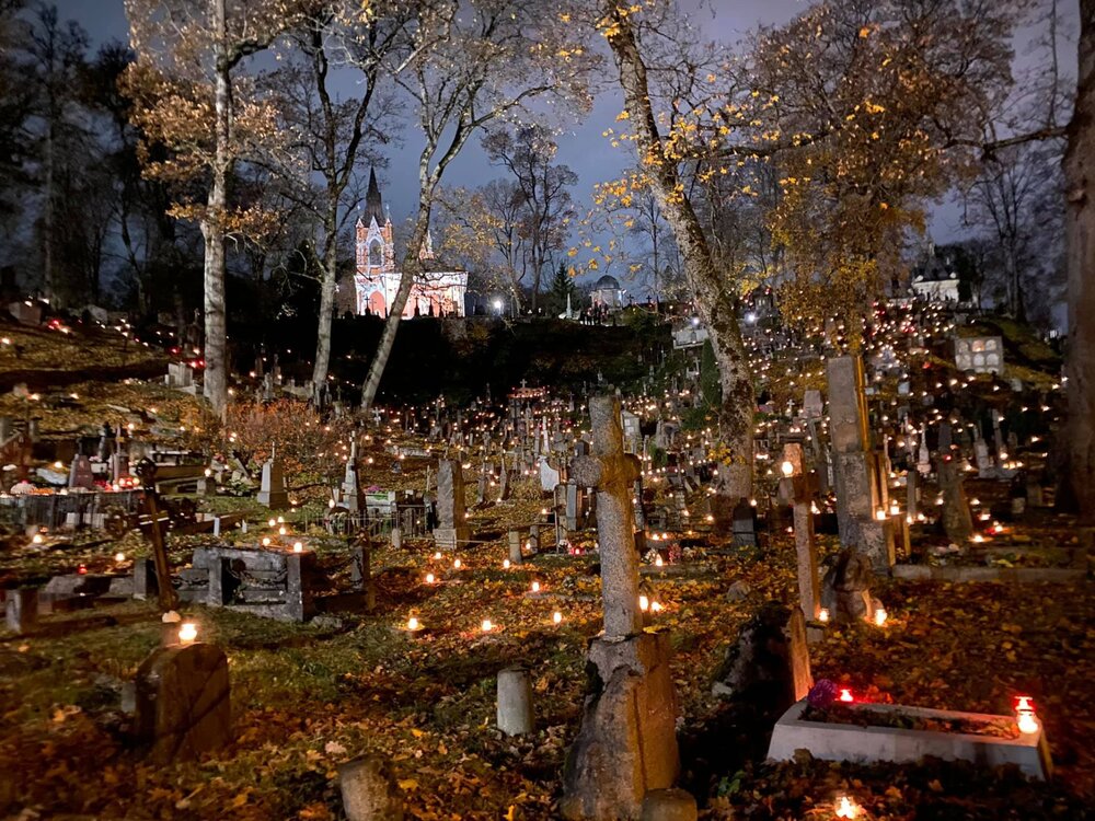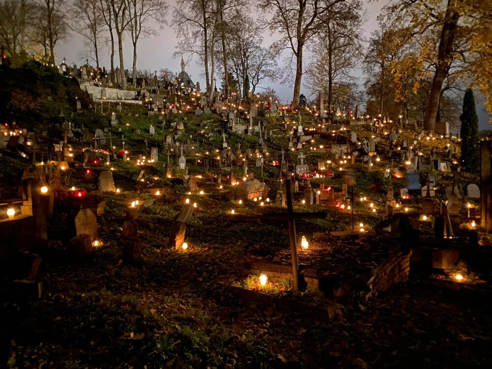Все мы знаем про традиционные европейские карнавалы перед Великим постом - Венецианский и десятки более мелких, которые проходят в конце зимы и в начале весны во множестве европейских городов. Но есть и другие карнавалы, связанные с христианскими праздниками в течение года, самым своеобразным из которых является, пожалуй, мексиканский Dia de los Muertos. Он проводится 2 ноября, в отмечаемый Католической церковью День поминовения всех усопших верных, на следующий день после 1 ноября - Дня всех святых (вообще в Католической церкви ноябрь особо отмечен как месяц поминовения умерших). Во многих католических странах в эти дни вечером зажигают свечи на всех кладбищах, которые там горят всю ночь. Вид потрясающий, вот вчерашние фото, если не ошибаюсь, из Вильнюса В Мексике тоже так делают, но из-за латиноамериканской темпераментности не останавливаются на прочитанной молитве и зажженой свечке ))))) там принято оставатся на могиле несколько часов вечером или ранним утром, а многие остаются на кладбище всю ночь! Да и одной свечки для умерших родственников явно недостаточно, поэтому могилы обставляют десятками свечей