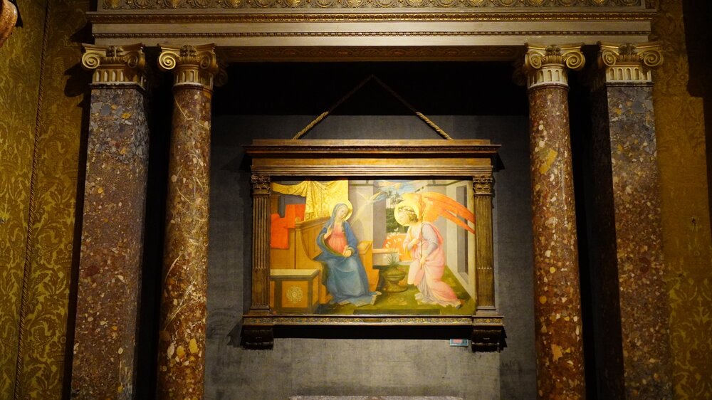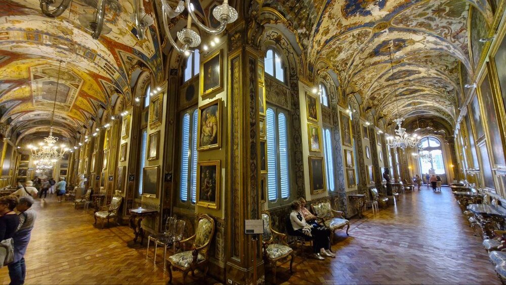 Мы выходим к первой цели на сегодня - палаццо Барберини, огромному дворцу, построенному Маффео Барберини после того, как его избрали Папой. Несмотря на размеры и сложную судьбу (Папа думал, что один гениальный архитектор это хорошо, а три лучше и поставил творить и интриговать здесь в том числе Бернини и Борромини) дворец построили за восемь лет и триста лет по 1949 год он находился во владении семьи Барберини. После того, как здание выкупило государство его до 2011 года реставрировали и вот уже почти полтора десятка лет здесь открыта для всех желающих Национальная галерея старинного искусства. Чем хороши художественные галереи в Италии, так это своим расположением. Нет, они не опускаются до расположения в современных модных зданиях, их окружает дворцовая роскошь. Даже без картин эти дворцы достойны посещения.