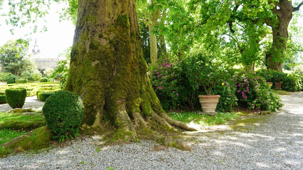 22. Аппиева дорога это сейчас длинная пешеходная дорога в парке, по которй можно ездить машинам местных жителей. Я боюсь даже представить, сколько миллионов стоят здешние виллы, а их сохранилось немало. Да, государство людей не выкинуло, отобрав участки, возможно, выкупает то, что выставляется на продажу.Жить тут очень престижно, до центра 5 км, вокруг тишина, свежий воздух и практически сельская идиллия. Если не боишься жить на кладбище, то самое то. Виллы тут огромные по площади, наверняка эти участки как нарезали в Средневековье, так они и сохранились, только вместо полей сделали цветники и лужайки. Можно подойти и заглянуть через забор, но самих вилл не видно, только аллеи. Античная статуя? Ну вот пусть стоит перед входом, красиво и говорит об изысканности и утончённости хозяев. Да, мало что изменилось за две тысячи лет работы ритуальных служб. И тогда могилы украшались фотокарточками погребенных На этом месте находилось захоронение рано умерших сыновей Секста Помпея Великого, непреклонного противника Цезаря и Октавиана, казнённого в 35 году до н.э. Некоторые гробницы сохранились получше, в одну из них заглядываю через окошко. Здесь чудом сохранились саркофаги, которые по ошибке многие считают красивыми и долговечными гробами. Да, их можно так назвать, вот только гробами они были временными. Даже богатые семьи не могли позволить себе хоронить всех родичей в отдельных саркофагах, поэтому в них захоранивали на 10-20 лет, а потом останки доставали, складывали в урну и перезахоранивали в нише гробницы. А в саркофаг клали следующего умершего. Вот тут, на очередной заплатке старой дороги видно, почему её приходилось постоянно ремонтировать - бесконечные вереницы телег даже в твёрдом базальте выбивали колеи.