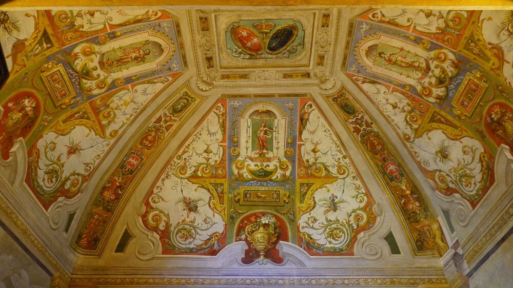 12. Дальше мы продолжаем наш путь вдоль стен, где-то они пролегают через городские кварталы, а где-то улицы чуть отодвигаются и под стенами тянутся небольшие зелёные скверы. Вдоль стен мы дошли до очередного холма, Латеранского, одного из многочисленных холмов Рима, но не входящего в число тех семи "классических" холмов, на которых Рим стоит Первым делом зашли в Латеранский баптистерий, отдельное здание для крещений. Он стоит с тыльной стороны Латеранского дворца и базилики и не все туристы сюда доходят. А мы как раз с этой стороны выходим, поэтому что ж не зайти. Внешне баптистерий совершенно непримечателен, это обычный кирпичный восьмиугольник, вся красота скрывается внутри. Он был построен в 320-е годы после того, как Константин захватил Рим и уравнял христианство с официальной религией, тогда же он подарил всё императорское поместье на Латеранском холме римскому Папе, здесь началась перестройка дворца и строительство церкви. То, что мы видим сейчас, это плод многочисленных перестроек и улучшений, от античности сохранились только стены и колонны, которые ещё и стоят не на первоначальных местах. Но красиво, конечно, получается такая изящная беседка внутри круглого павильона с расписными стенами и золотым потолком Росписи, правда, уже 17 века и они описывают подвиги Константина, который ещё не стал полновластным повелителем империи и не получил титул "Великий". Вот мы видим на одной фреске анахронизм - символ креста. Вообще в описаниях 4 века упоминается только некий символ без уточнения, а, как известно историкам, крест тогда христианами почти не использовался, так что непонятно, что именно увидел Константин. Так что ситуация получилась точно такая же, как с яблоком Евы - в оригинале там тоже неуточнённый плод ))). Но абстрактные плод или символ не нарисуешь, поэтому художники и выкручивались как могли ))) А вот главная ценность баптистерия, сохранившиеся античные мозаики Теперь нам предстоит обойти громаду Латеранского дворца, который тысячу лет был местом проживания римских пап, а дело это небыстрое и трудное. Айайай, святой человек, а переходит дорогу на красный! Полиция делает вид, что всё нормально Пока обходили дворец, проголодались и устали, поэтому решили зайти в библиотеку перекусить. Лене взяли какую-то пасту, мне свиные рёбра И пиво с кампари сприц. Там были 4 вида сприца - апероль, кампари, лимончелло и мирт. Уже неделю жалею, что не взял попробовать мирт. Никогда такое не видел в меню, интересно какой у него вкус. Ладно, будем надеяться, что в Италию мы ещё съездим и на интересные коктейли наткнёмся. И уж тогда-то не оплошаем ))))