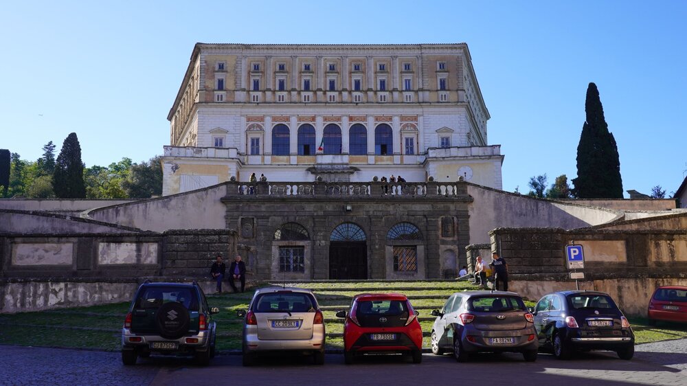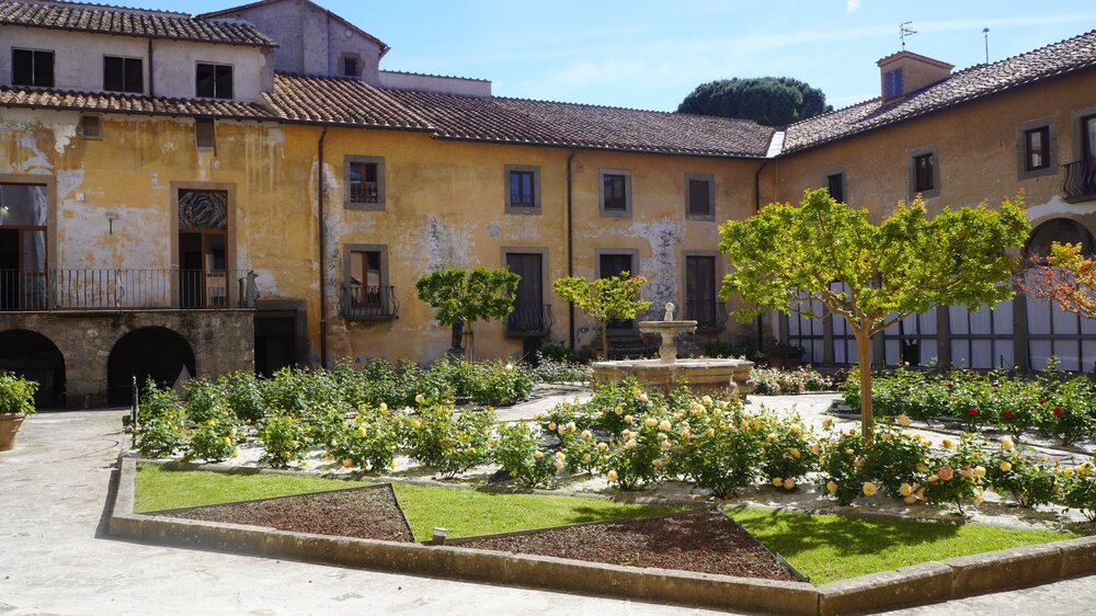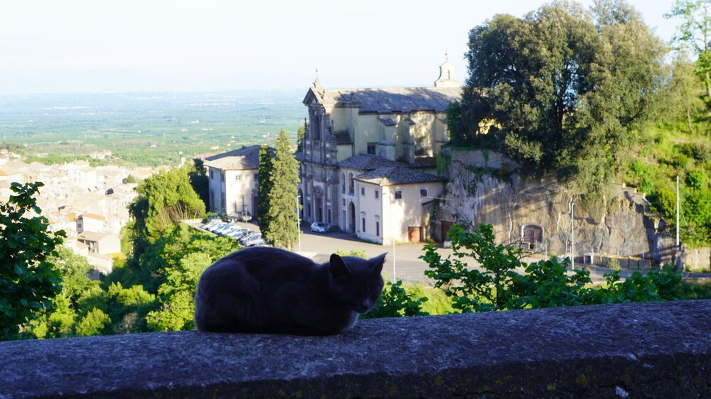 8. День десятый (но я уже не уверен, может и сбился )))) Сегодня план у нас такой: 9.00 выезд 9.30 - 10.30 Фраскати 11.05 - 12.05 Неми 13.30 - 14.30 Сермонетта 14.50 - 16.10 сад Нинфа. Далее в аэропорт и вылет в Ереван. День сегодня очень галопный, программа изначально была на день дольше и ТТВ пришлось всё впихивать в один день, выкидывая что не влезает. Вчера группа приехала поздно, поэтому и выезд сегодня тоже на полчаса попозже, тем более надо собирать чемоданы. А дело это непростое, за время прогулок по городам количество покупок постепенно росло. Вот мы обычно везём из поездок вино и, может быть, сыр, но в Италии какое-то наваждение каждый раз. Вроде и не тратим время на шоппинг, никуда не заходим, планов что-то купить не имеем, а вот поди ж ты, откуда-то целая гора покупок. Нам собирать чемоданы послезавтра и мы тоже в немом изумлении стояли перед этой необъяснимой горой покупок - джинсы, пиджаки, рубашка, брюки, шорты, сумка и ещё всякая мелочь. Видимо, воздух в Италии какой-то особый, идёшь по улице, ни о чём не думаешь, потом какое-то затмение и приходишь в себя снова на улице, но уже с пакетом в руках)))) Ладно, нам пора выезжать из Рима на юг, в первый городок - Фраскати. Это самый неинтересный пункт сегодня, мы прошлись по городку, Лена Зайцева нам рассказала про него, свободного времени почти не было. лучше вместо него дали больше времени в других местах, они гораздо интереснее. А так даже на пообедать времени не было в течение дня, всё бегом и бегом. Нет, если идти с группой то получается довольно комфортно и неторопливо, но вот ни на что другое уже времени нет.