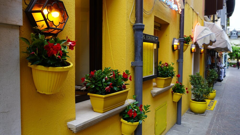 Заходим в квартал Сан Пелегрино, антуражный средневековый райончик, состоящий из центральной улицы и нескольких перпендикулярных ей переулков. Центральная улица и крошечные площади на ней совершенно туристические с кучей магазинчиков и ресторанчиков, а вот переулки пустынные с жилыми домами. Хоть квартал этот и небольшой, но расположен немного на склоне и переулки справа (если идти от папского дворца) уходят вниз, так что желающему осмотреть их все нужно будет несколько раз под уклон спуститься, а потом подняться. Но оно того стоит, эти переулки не менее живописны, чем центральная улица, хоть и по-другому - они попроще, но поживее. А вот и фестиваль цветов. Мы идём с правильной стороны, от края к центру города, поэтому каждая последующая клумба будет крупнее предыдущей. Туристические магазинчики тут как и везде, большинство продает обычный ширпотреб, но встречается и что-то интересное.