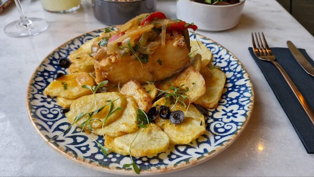 19. Янтаря тут много, кое-какие витрины интересные. Поляки говорят, что водка это их, борщ тоже их, вот теперь и Змей Горыныч, похоже, тоже стал их )))) Вон вдалеке слева массивный Журав возвышается над домами. Фото с Зелёного моста Зелёный мост, что логично, ведёт к Зелёным воротам. Немцы-скупердяи, населявшие приморский город решили сэкономить и построить на месте старых обветшавших ворот новые, а заодно и королевскую резиденцию, чтоб не строить отдельный дворец. Ворота получились большие и красивые в модном в середине 16 века фламандском стиле. Сразу за воротами начинается длинная и узкая площадь Длинный рынок, главная площадь старого города с толпами народа, ёлками, ресторанчиками и барами. В один из ресторанчиков мы и заходим попробовать вкусной и жирной польской кухни. Взяли свиные рёбра в соусе барбекю и ещё какую-то свинину. И впервые увидели горячий апероль, решили попробовать, оказалось вкусно, что-то среднее между аперолем и глинтвейном. Белорусская карта в ресторане закапризничала и не захотела работать, злотых у нас не было, но у нас без проблем взяли евро, причем по вполне гуманному курсу.