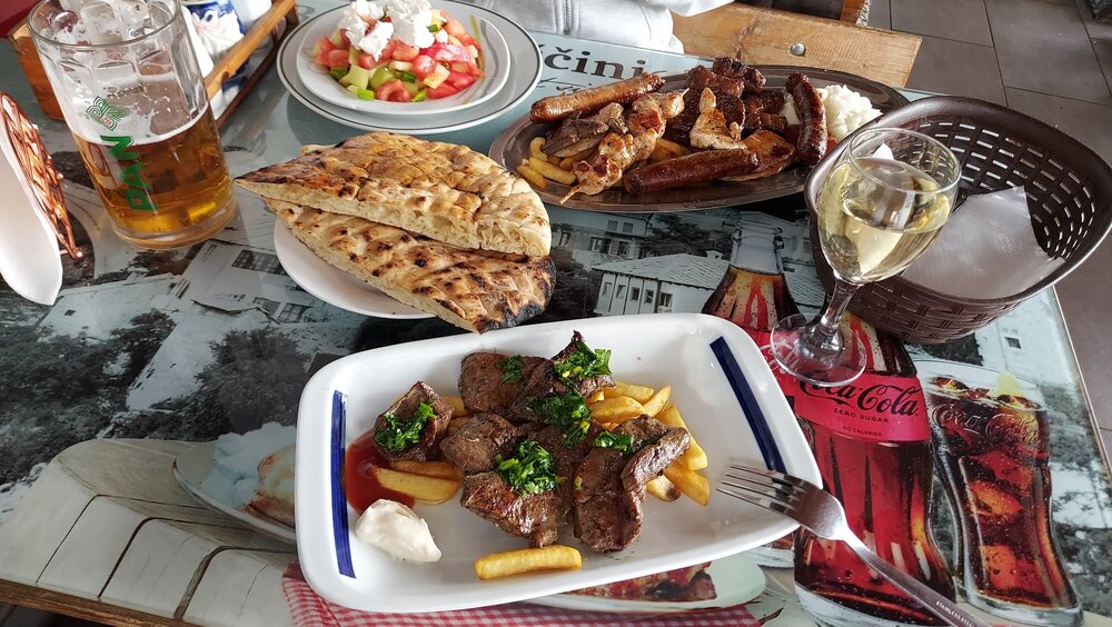 Провинциальная Франция началась прямо тут же, в ресторанчике напротив дворца. Мы решили сразу же "откатать обязательную программу" и заказали луковый суп, фуа-гру и говяжью вырезку по-нормандски. Суп 8,5 евро, печень 8, вырезка 15. Итого поели на 32 евро, что по французским меркам почти даром. Луковый суп оказался с крутонами (мы во Франции, поэтому никаких сухариков, только крутоны)))))) и сыром Фуа-гру нам предложили намазать на подсушенный хлеб и сверху ещё добавить конфитюр из инжира (по мне, так по отдельности вкуснее) А говядина с грибным соусом и рисом басмати была просто хороша Ну ладно, пора наи ехать дальше на юг. И следующая наша остановка в городке Везле, где находится знаменитое аббатство. Вон оно, наверху. А городок спускается вниз по склону влево от него Припарковались, разобрались с парковочным автоматом и отправились вверх по средневековым улочкам. Городок миленький, аккуратненький, настоящий такой туристический старинный городок. Впрочем, у нас их впереди будет ещё немало. Обычный магазинчик, ничего особенного )))) Вот с розами нам повезло, сейчас сезон цветения и города покрыты розами всех возможных оттенков и размеров. Ещё кое-где встречаются тюльпаны, а в Бургундии полно ирисов. Кстати, мы уже в ней, так что совсем скоро мы эти цветы увидим