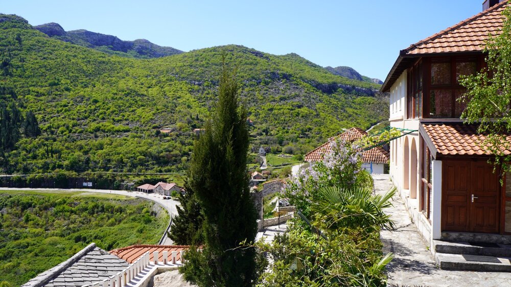 Дальше пошли мы вокруг церкви по тем местам, где когда-то располагались многочисленные постройки аббатства. Теперь же тут террасы и лужайки, на которых приятно отдохнуть жарким летом (сейчас ещё не лето, но всё равно с каждым днём всё жарче). Встертился нам по пути и розовый сад, впрочем, содержимое явно не соответствовало такому гордому названию. Розовых кустов мало и они какие-то чахлые, только одна жёлтая роза старалась вовсю. Зато виды открываются отсюда прекрасные. Да, Бургундия - она такая вот, слегка всхолмленная, вся покрытая квадратиками пастбищ, засеянных полей и полосами лесов. У меня теперь Бургундия ассоциируется не с бургундским, а со всеми оттенками зелёного цвета. Ну и с коровами, тут их какое-то невероятное количество, мы нигде их столько не видели никогда.