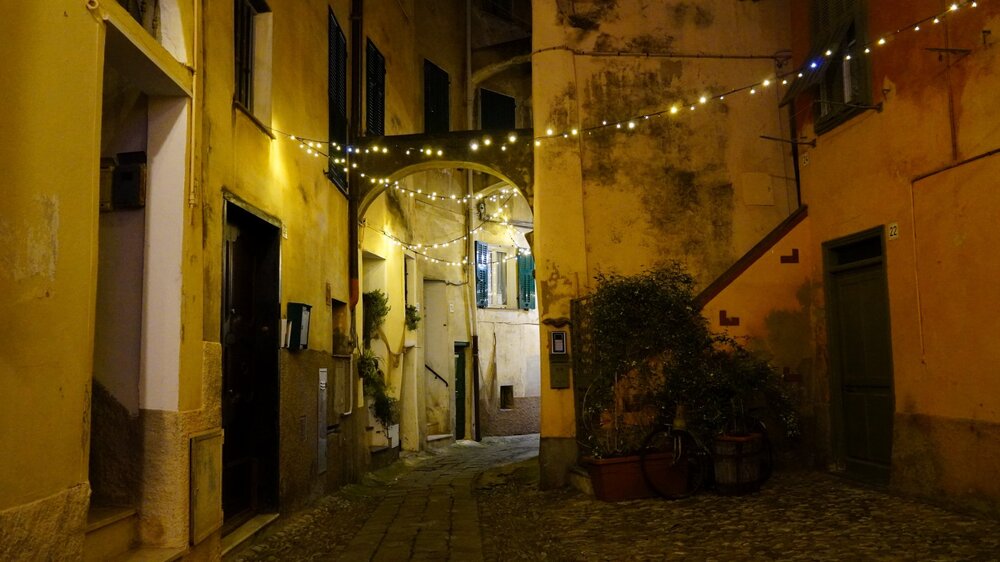 Квартал Сан-Пелегрино очень атмосферный, с узкими улочками и переулками, немного мрачный и таинственный. Сейчас, зимой, тут совсем мало туристов и почти все ресторанчики и магазинчики закрыты. Нашли один открытый, сунулись внутрь, а хозяин машет руками, мол, закрыты, приходите вечером.