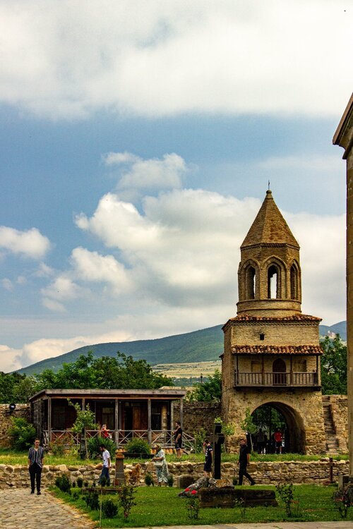 12. Андреевские шишки в пелене дождя и сумерках Где, в каком населенном пункте у нас состоялся обед я не знаю. Мне было все равно, если честно. Это был город, но по виду, скорее поселок городского типа, малоэтажный. Дело было 9-го мая, хорошо, что нашлись желающие нас накормить в этот выходной и праздничный день. Обедали мы на мой взгляд слишком долго, хотя столы были накрыты, задержка состоялась по причине одной туалетной комнаты, нас все же было слишком много. Потом начали рядиться- ехать, не ехать на Андреевские шишки, как заявлено в программе. У меня были планы на них. Дождь в это время закончился, и было тепло и влажно, почти безветренно. Время стремительно летело, а решения все не было... Наконец предложили поднять руки, кто поедет на шишки. Таких оказалось 10 человек из 35. Остальным предложили посетить храмовый комплекс, что находился в этом месте. Когда мы вышли из кафе, стало ясно, что небеса вот-вот извергнутся ливнем, подруга и многие другие боясь снова вымокнуть, решили поехать с нами на Андреевские шишки - просто посмотреть что это такое и посмотреть на монастырь, что находится рядом. Итак, в17-30 мы наконец двинулись в сторону Андреевки, и тут начался нет, не дождь, ливень стеной. Мы продолжали свой путь, а подруга начала переживать за оставшихся с одним из гидов - что они там будут делать, пока мы ездим, спрятаться ведь им негде. Я ее успокоила - они ведь в храмовом комплексе, не на улице... Ехали мы минут 40, сначала по бетонке, а потом большую часть по грунтовке. Когда наконец приехали, и я было собралась совершить "подвиг", подруга заявила, что не отпустит меня -я только что просохла, и больше нет сухой одежды. Но я решительно шагнула из автобуса - шишки едва видны были в пелене дождя, и кутались в тяжелые серые тучи. Дождь был сильный, но при этом еще был очень сильный ветер, дождевик я выкинула, завернув в него мусор, салфетки, которыми обтирала кроссы после Долгих гор. Другого у меня не было. Подъем на шишки был в густой траве - ноги бы промокли сразу. И я решила отказаться от подъема на шишки. Отказались и другие. Подниматься пошли две туристки, гид и фотограф. Остальные с тревогой пытались рассмотреть их сквозь пелену дождя в сгущающейся темноте. Я вышла посмотреть монастырь, здание очень красивое, но было очень мокро и грязно на дороге - она была сплошная глина, сделав пару кадров быстренько вернулась в автобус. Мы стали ждать своих отважных друзей. Подруга бубнила и пыталась найти единомышленников - почему не отменили, почему вся группа должна ждать этих двоих? Что делают те, кто остался? Я предложила водителям поставить нам какой-нибудь фильм, может кино ее отвлечет и она заткнется? Выбор фильмов был не большой и нам поставили "Полицейский из Беверли-Хиллз 2024". Я периодически выглядывала в открытую дверь, пытаясь рассмотреть наших ребят. Но все было тщетно, видимость была очень плохая, с Андреевских шишек спускалась колонна внедорожников, их яркие огни фар, как гирлянда освещали дорогу с гор. Долго ли, коротко ли, наши вернулись, на их лицах сияли улыбки, чему мы все были удивлены. Двинулись в обратный путь, очень нелегкий я вам скажу. Автобус на 45 мест - это не внедорожник, которому глиняная грунтовка нипочем. Я сидела у прохода на 8 ряду и в зеркало мне хорошо было видно лицо водителя за рулем и дорогу, и то, как он стиснув зубы пытался выравнивать ав