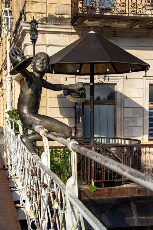 22. По окончании экскурсии подруга укатила в отель. Ее мечта на сегодняшний вечер - спа бассейн в отеле. А я вместе с остатком группы и штатным фотографом отправилась на мост, соединяющий европейскую и азиатскую часть реки Урал (Яик). Но вскоре бесконечные фото сессии туристок из нашей группы на мосту меня утомили и я отправилась в одиночестве (кругом было полно народа, и местных и приезжих) вдоль реки и детской железной дороги в сторону нашего отеля, который хорошо был виден с моста. Заблудиться было невозможно. Закатное солнце ласкало своим теплом и золотило противоположный берег. И было так хорошо и уютно здесь. И красиво. Я наслаждалась теплом, видами, и не торопилась в отель. Вот здесь виден комплекс строений из красного кирпича, в самом конце его находится наш отель Яр на одну ночь и удивительная башня. Ее нам уже показывала Татьяна. В ней находится кафе-ресторан, где мы обедали, когда приехали в Оренбург.
