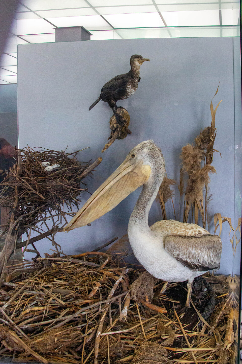 Скадарское озеро По дороге к озеру за овкном нашего автолайнера промелькнули Католический храм Святого Апостола Петра – одна из святынь черногорского города Бара, построенный в 2014 г. в районе Тополица, разрушенная крепость на вершине скалы, к которой идет достаточно широкая тропа, по которой с удовольствием бы поднялась в другое время. Вскоре уже мы увидели его - озеро. Первые кадры самых нетерпеливых как всегда из окна, очень уж красиво было. Сначала мы отправились в небольшой местный краеведческий музей. Он находится в одном из помещений и содержит тематические экспозиции, включая гербарии, чучела животных, рыболовные снасти и предметы быта местного населения. Нам провели экскурсию, показав на макетах национальные природные парки Черногории. Но главной жемчужиной озера является кудрявый пеликан, чучело которого можно увидеть в этом музее. Это очень крупная птица! Эти величественные птицы могут достигать длины от 170 до 190 см, а размах крыльев — более 3 метров. Обычно они весят от 11 до 15 кг и обладают впечатляющей внешностью с длинными, кудрявыми перьями на голове и чёрными перьями на кончиках крыльев. И у туристов, посещающих озеро есть шанс увидеть их вживую! Будем искать их и мы. Также рядом с озером расположен винный магазин, выдолбленный в скале, в котором можно было приобрести местные вина без пошлины (НДС). Вина Черногории известны благодаря уникальным сортам, таким как Вранац (красное) и Крстач (белое). Они считаются визитной карточкой страны. Также в Черногории производят вина из популярных международных сортов винограда, таких как Мерло и Каберне Совиньон, и экспериментируют с ягодными и фруктовыми винами. Черногорское виноделие необычно тем, что оно фактически сосредоточено в одном месте – между Скадарским озером и столицей страны Подгорицей. Здесь расположен огромный виноградник государственной винодельни «Плантаже», а рядом с ним – десятки небольших семейных виноделен. Самый важный сорт винограда Черногории – красный Вранац. Из него делают выдержанное сортовое вино, которое по мощности и органолептике сравнивают с лучшими винами юга Франции и Италии. Оно обладает интенсивным ягодным вкусом с нотами шоколада, бархатистыми танинами и продолжительным фруктовым послевкусием. Из других сортов винограда в Черногории выращивают: красные Сира, Санджовезе, Трибидраг, белые Шардоне, Крстач, Смедеревка и др. Есть и игристые вина. Цены колеблются от 5 евро и доходят до 100 евро за марочные и выдержанные (это я видела у Вранац). Я привезла в этот раз Вранац, Крстач и игристое Montenegrin Val – brut (взяла на пробу) средней цены около 9 евро, было и более дорогое. Вранац уже выпили- мне понравилось, Крстач подарила детям, отзывов пока нет, игристое еще стоит, ждет своего часа. Магазинчик мы посетили на обратном пути и все покупки делали уже после знакомства с озером.