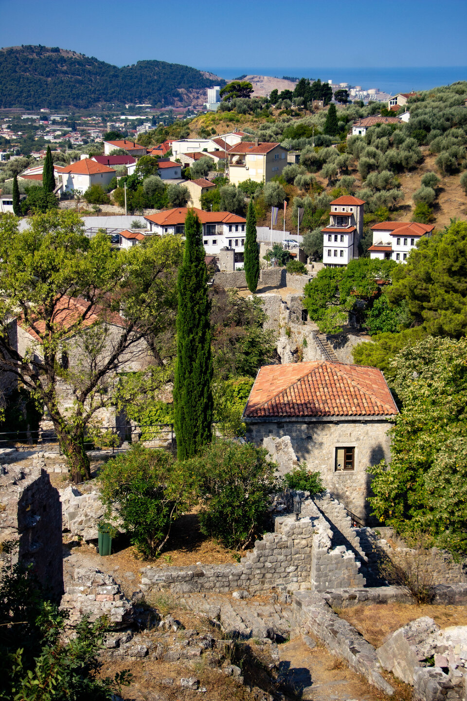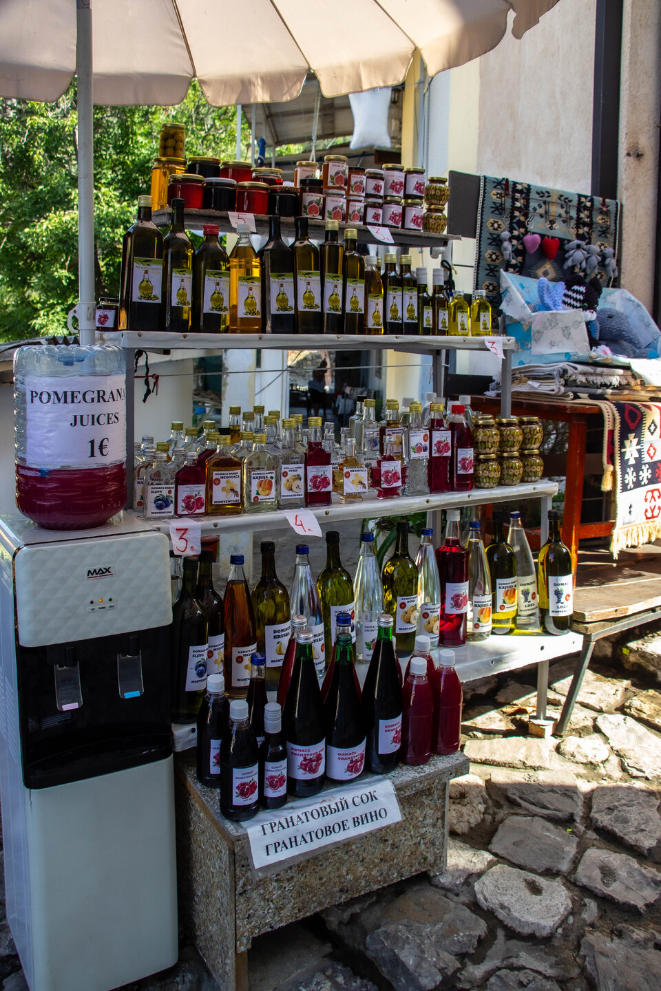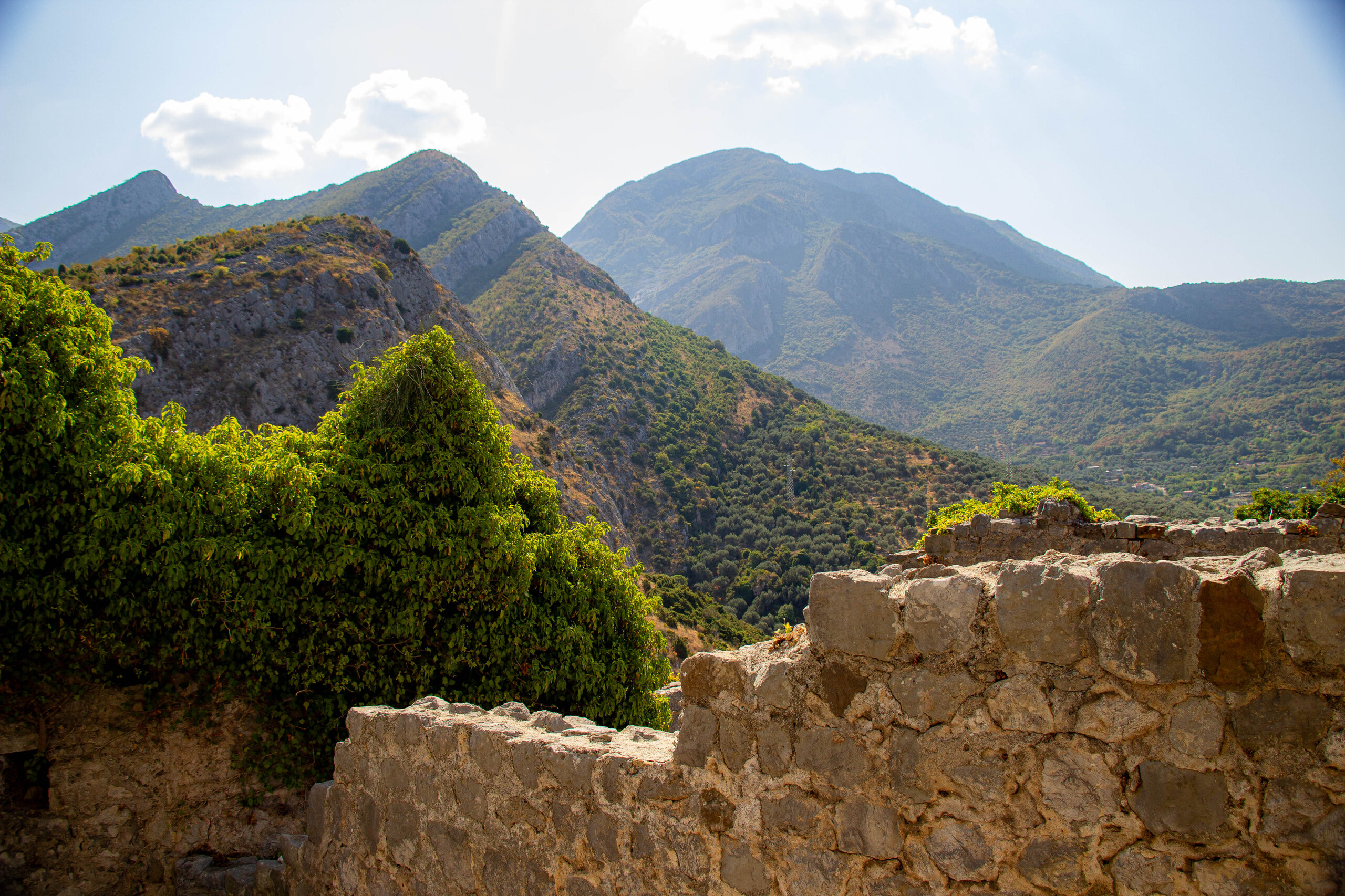 Насмотревшись вдоволь на руины, мы спустились снова по той же улочке с сувенирами и кафе. Передохнули немного, кто-то выпил гранатовый сок, я предпочла гранатовое пиво. Было очень жарко, пиво освежало хорошо, правда вкус граната я не очень уловила. Затем вернулись на парковку, бросили прощальный взгляд на горы и крепость и поехали к Скадарскому озеру. Но о нем я расскажу в следующий раз. Продолжение обязательно будет, поэтому не прощаюсь.