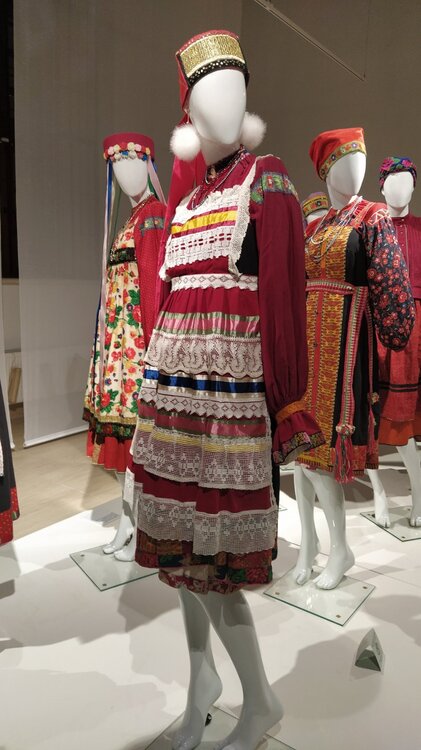 И ещё на выставку ходила в праздничные дни «Сарафан, шушпан, одёжа» в восстановленном манеже в Кремле, было холодно и было решено идти в музей. «Образы Нижегородского Поволжья в традиционной праздничной одежде». Экспонаты представлены музеями С-Петербурга, Москвы, Нижнего и из частных коллекций, костюмы подлинные, только несколько головных уборов реконструкция.