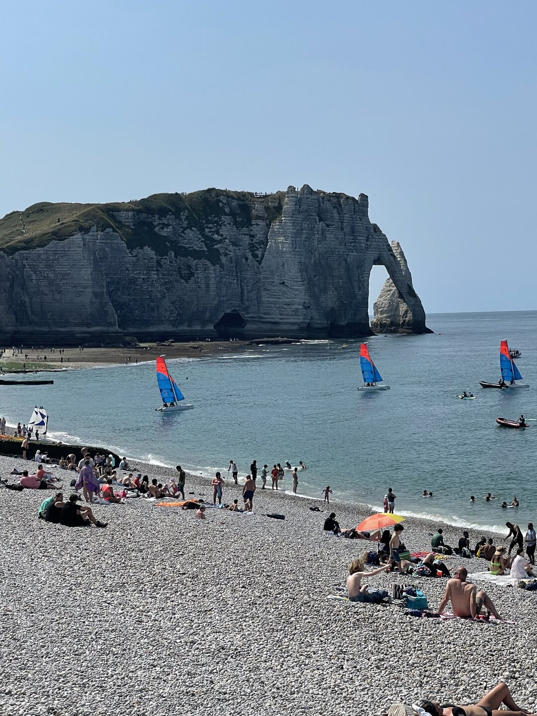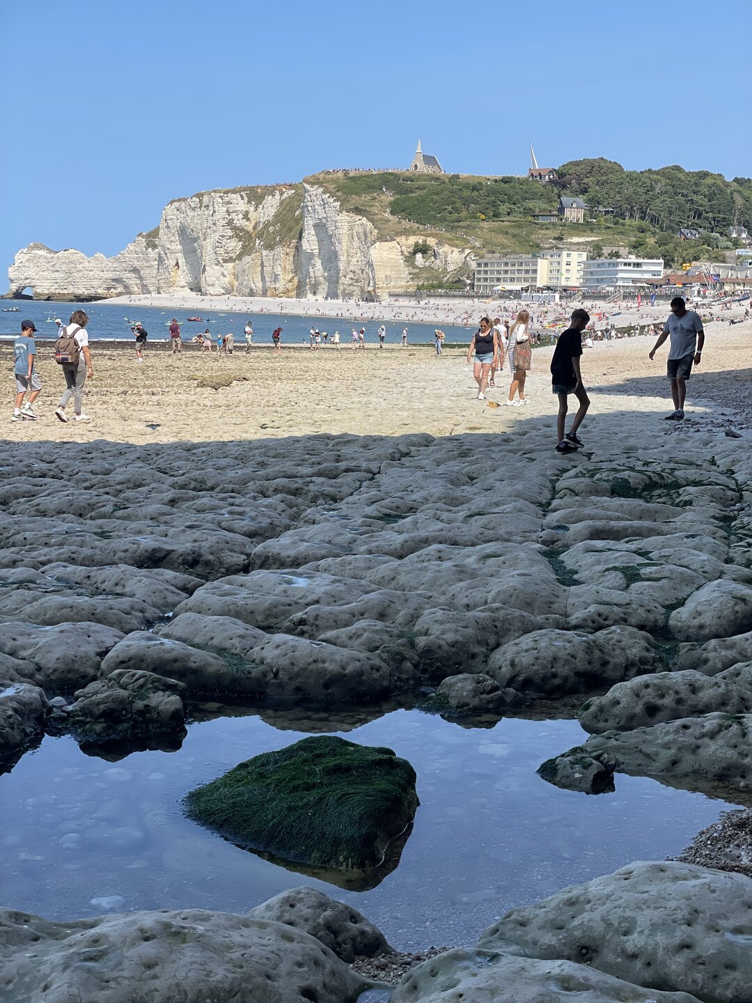 Э -Этрета. Кажется уже кто-то писал об этом городке на берегу Ла- Манша , но попробую добавить фото с прошлого лета. Там состоялась наша первая встреча с Атлантикой, там мы увидели отлив и походили «по дну океана»))) приехали на машине из Руана и уже достаточно поздно, а впереди в тот день было еще пару городов в Нормандии, поэтому провели в Этрета не так много времени. От стоянки пришлось пройти приличное расстояние до города по палящему солнцу, что тоже отняло драгоценное время. Но шли мы не одни - туристов очень много. К сожалению не успели подняться в прекрасный сад, но будет повод вернуться!