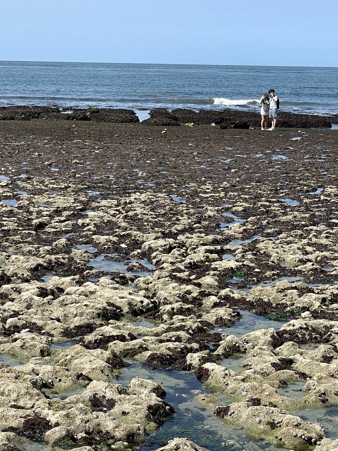 О - Омаха Бич. Не совсем город, но место знаковое во Франции, во время Второй мировой там высадился десант… сын знал об этом месте в Нормандии нет только из истории, но и из компьютерных игр, было интересно увидеть своими глазами. Сейчас там расположен мемориал. Приезжает огромное количество туристов из разных стран. Мы прошли вдоль берега Атлантики несколько километров, погода была хмурая и ветреная, что придавало этому историческому пляжу суровости.