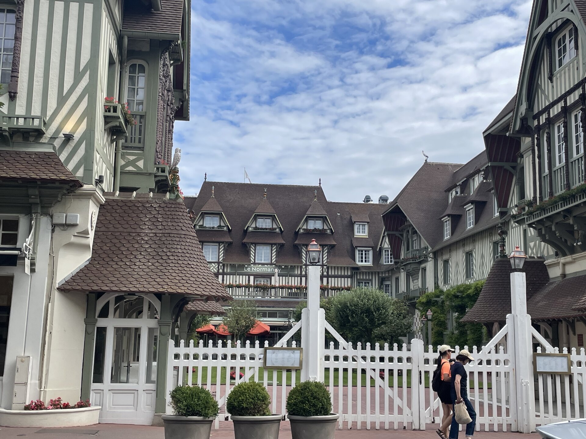 Д - Довиль. Курортный город во Франции на берегу Атлантики. Как хотелось пожить там хотя бы пару дней, чтобы просыпаться с видом на океан и широченные песчаные пляжи. Но мало того, что цены на отель там заоблачные, так и мест в августе нет! Поэтому из Гавра мы приехали в городок Тук, там и стоянка для машин была у отеля и цена за номер приемлемая, да и до Довиля или Трувиля минут 30 пешком. Одноименная река Тук как раз и является границей Довиля и Трувиля. Разделять эти города не хочется, они же просто перетекают один в другой по мостику и оканчиваются одинаково))) да, дорого-богато, да- Париж относительно рядом, пляжи прекрасные и есть казино, ну вот и тянутся туда люди, которые могут себе позволить эту роскошь, а уж в августе особенно.