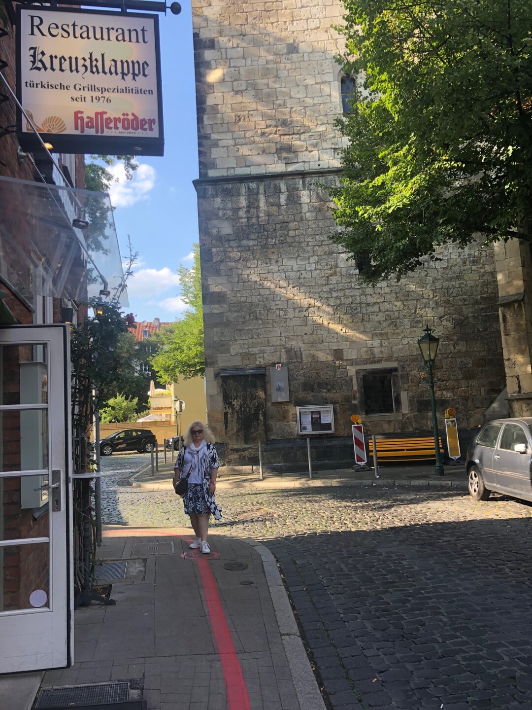 Около 12 часов дня мы вышли из отеля и поехали в Ганновер. Про этот город я раньше слышала только в сводках новостей, что-то типа того - "В Ганновере прошла выставка..." или какое-то политическое событие. Город для меня был вообще непонятен, хотя является столицей Нижней Саксонии! Поэтому я сама не знала, что увижу))) Ехали мы довольно долго, часа 4, и вот наш отель у которого оказалась удобная парковка на 2 этаже, такая своеобразная на крыше. Прямо с парковки мы увидели небольшой собор. Потом спустились на ресепшн, там нас ждали приветственные напитки и вкусная выпечка. А в номере была небольшая приветственная бутылочка вина, пустячок, а приятно! Мы покидали вещи и пошли гулять. До Красной нити (линии) надо было пройти немного к центру, но уже по пути до нее нам встречались интересные дома и памятники, а также организованные группы туристов. Возле одного из памятников мы сначала не поняли что происходит, а потом разобрались - там была пожилая артистка в костюме, которая помогала туристам наглядно представить, что происходило на этом месте когда-то. Ну и мы посмотрели))) А потом мы всё-таки нашли эту Красную линию, правда пошли не с 1 цифры, а с середины, но в итоге сделали полный круг. Сын мне всё время говорил, что я саботирую линию и нарушаю правила, а я просто иногда хотела посмотреть по сторонам) Это на его счастье было воскресенье и все магазины на торговой улице были закрыты, накрылся мой шопинг, но зато время не потеряли совсем на покупки. Город оказался милейший, и фахверковые дома были прекрасные в центре и зелени много, и архитектура прекрасная. Начинается Красная линия напротив ж/д вокзала у Инфоцентра, но идти по ней можно с любой точки. Всего 36 пунктов! Вот они все: 1 Начальный пункт маршрута — туристический центр у Главного вокзала Ганновера на площади Эрнста Августа 2 Галерея Луизы (нем. Galerie Luise) на Луизенштрассе, 5 3 Ганноверский оперный театр (нем. Opernhaus) на Опернплац, 1 4 Георгштрассе (нем. Georgstraße) 5 Георгплац (нем. Georgsplatz) 6 Эгидиевы ворота (нем. Aegidientor) средневековые городские ворота на Эгидиенплац 7 Церковь Св. Эгидия (нем. Aegidienkirche), носит имя Святого Эгидия, одного из Четырнадцати святых помощников 8 «Камень семи стражников» (Spartanerstein, Камень спартанцев) — исторический каменный крест в церкви Святого Эгидия 9 Фольксхохшуле и Kubus — Theodor-Lessing-Platz 10 Лучник на площади Трамплац[1] перед Новой ратушей 11 Новая ратуша (нем. Neues Rathaus) 12 Музей Августа Кестнера — Трамплац, 3 13 Гербовый портал (нем. Wappenportal) на здании Городского строительного управления (Städtische Bauverwaltung) 14 Дом Лавеса, (нем. Laveshaus) бывшая резиденция Георга Людвига Фридриха Лавеса (Georg Ludwig Friedrich Laves) — Фридрихсвал, 5 15 Дворец Вангенхайма 16 Колонна Ватерлоо (нем. Waterloosäule) и Городской архив 17 Von Wasserkunst und Flussgöttern an der Leine (см. Гёттингенская семёрка) 18 Дворцовый мост (Schloßbrücke) у Лейнского дворца 19 Башня Бегинок (Beginenturm) — Am Hohen Ufer 20 Нана, скульптура Ники де Сен-Фалль (Straßenkunst in Hannover, der Flohmarkt) 21 Durchs Marstalltor in die Altstadt 22 Старейший дом Ганновера (Hannovers ältestes Bürgerhaus) — (Burgstraße 12) 23 Церковь Святого Креста (Ганновер) (нем. Kreuzkirche) 24 Иоганн Дуве — Unternehmer und Imagepfleger (Duvekapelle an der Kreuzkirche) 25 Ballhof, Hannovers älteste Sporthalle 26 Исторический музей — Пфердештрассе, 6 27 Ландтаг Нижней Саксонии (Niedersächsischer Landtag) 28 Дом Лейбница (нем. Leibnizhaus), учёного, основателя и первого президента Берлинской Академии наук — Holzmarkt 29 Fachwerk und Kneipen — в центре Старого города 30 Рыночная ц