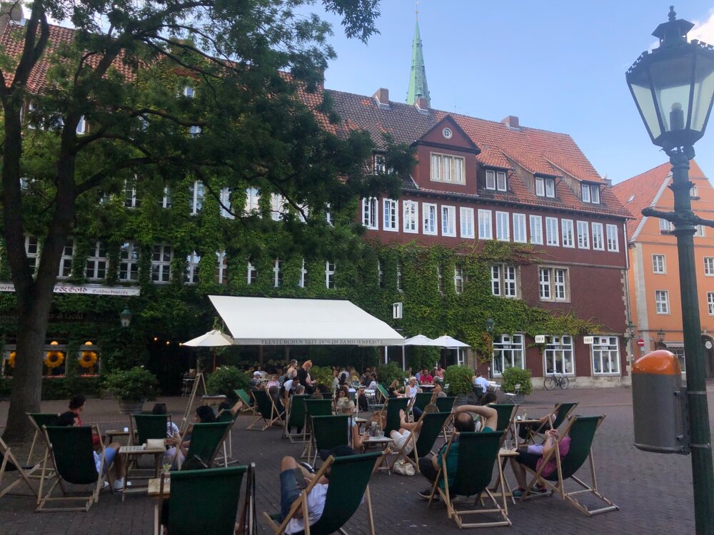 После дождя город стал чище и сиял на солнце, таким он мне нравился больше! Мы дошли до другого моста, по которому ходили трамваи, с моста увидели три дома в виде крюка, вернулись на свою сторону и погуляли на маленьких узких улочках, разглядывая красивые домики. На улицах играли музыканты, пиво лилось рекой - не жизнь, а сплошной праздник! Вдоволь погуляв я вспомнила, что хотела зайти в магазин Примарк, там я собиралась купить детские вещи от Дисней для племянников. Почему-то куда-то пропали все Диснеевские магазины, ни в Париже на Елисейских Полях, ни в Берлине не увидела потом. А в Примарке точно есть отдельные вещи этой марки, я помню. Договорились с сыном где встречаемся через час, и он пошел снова к собору, а я в магазин, да чуть не заблудилась по дороге в толпе))) Я вообще нормально ориентируюсь даже в незнакомых местах, но очень редко впадаю в топографический кретинизм и теряюсь на ровном месте. До магазина добралась, вещи детские Дисней нашла и вовремя явилась на встречу к сыну, а вот себе не успела посмотреть ничего. Было еще светло и до отеля мы пошли пешком. Надо было еще решить куда мы поедем завтра. И в битве между Лейпцигом и Ганновером победил последний) Отели все мы бронировали накануне, а иногда и день в день, единственное, отель в Берлине был забронирован заранее и это было удачей, так как потом там просто не было мест, а конкретно этот отель нас очень устраивал территориально! Вечером определились с отелем, немного посмотрели информацию по Ганноверу, чтобы уж не совсем наугад гулять) Там всё оказалось очень удобно - по центру города проходит туристическая так называемая Красная линия с цифрами, если по ней идти, то можно посмотреть все основные объекты! Отличная тема!!!