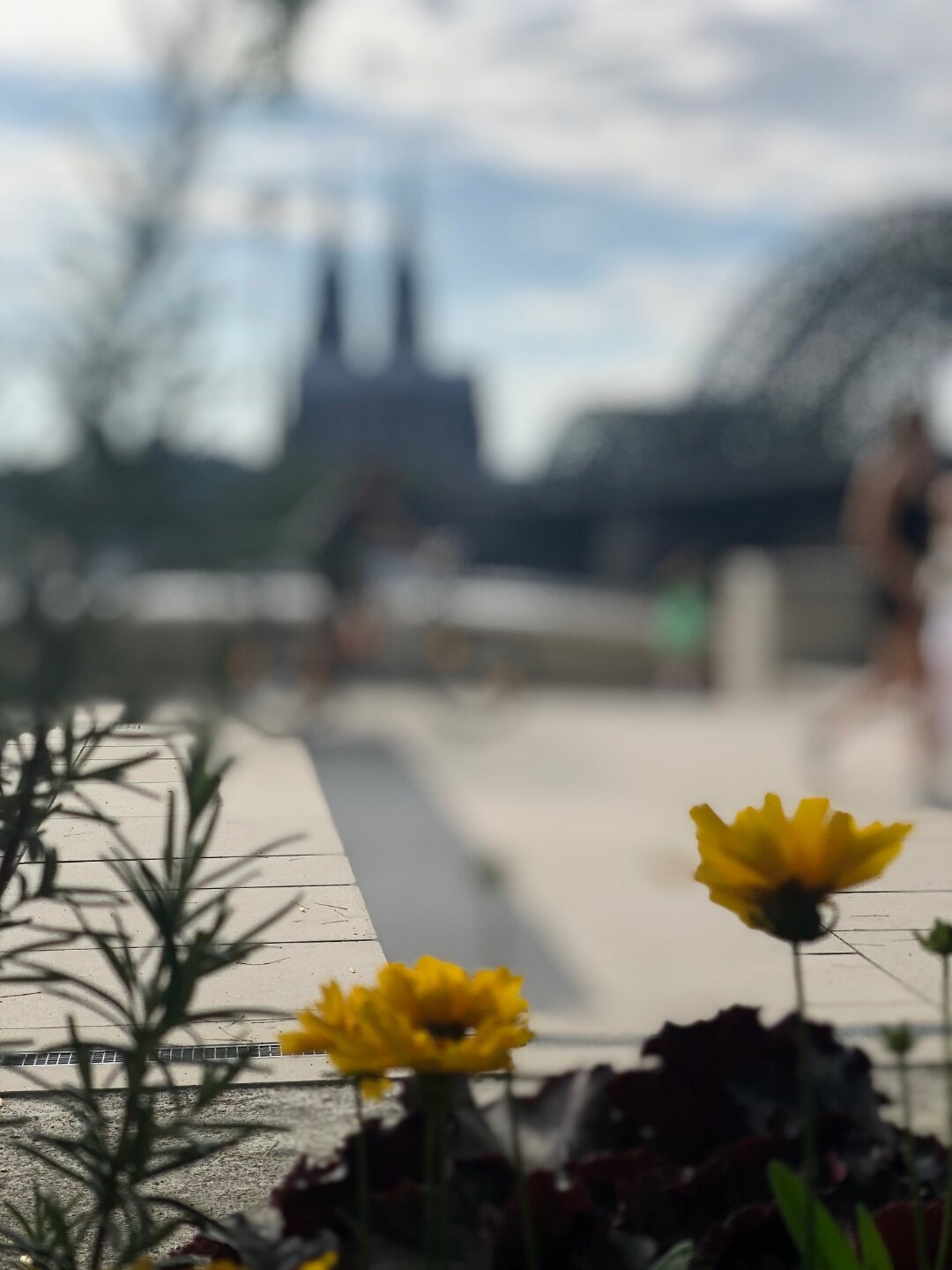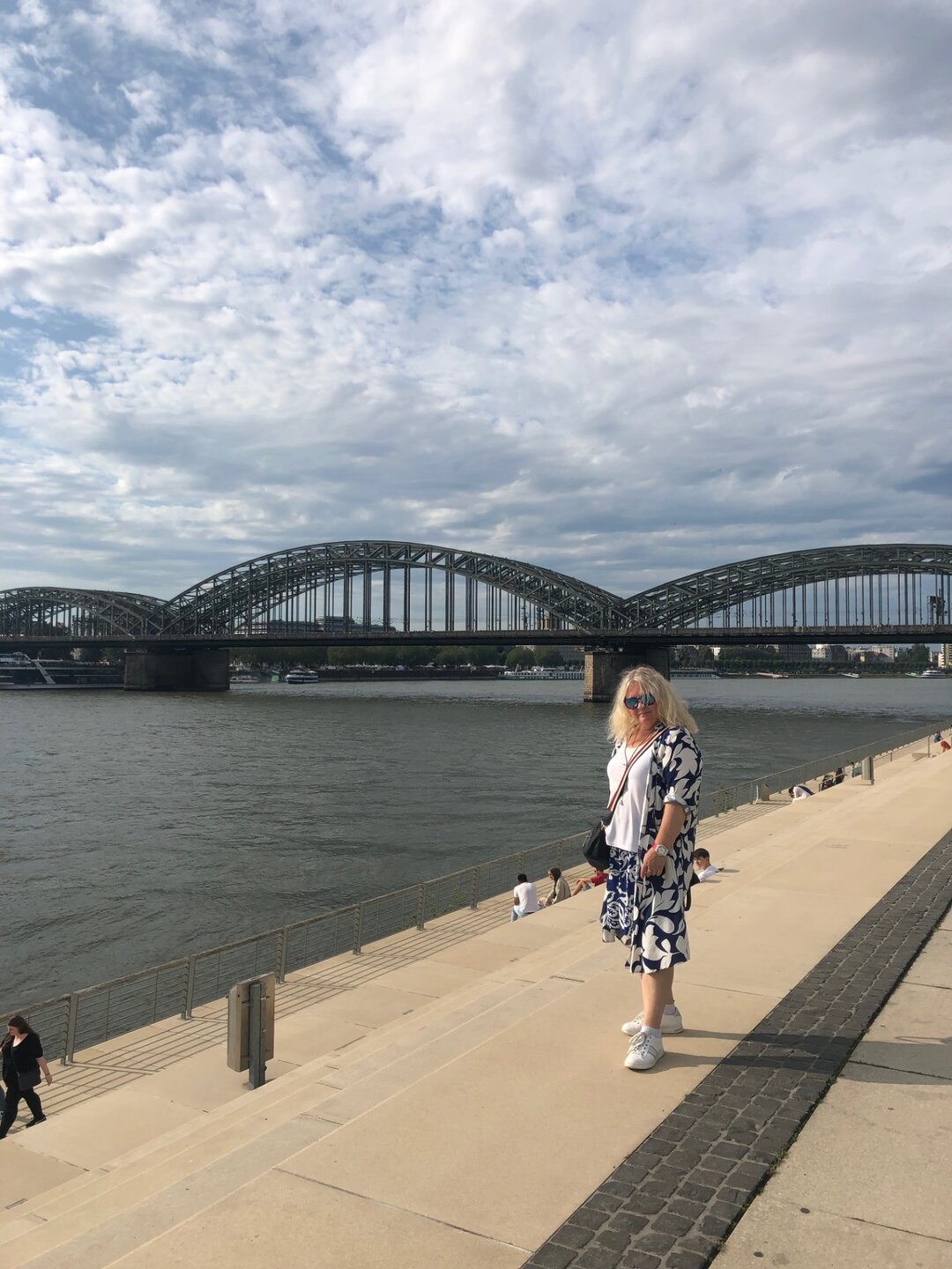До того, как к нам пришёл техник, я успела добежать до магазина, шла можно сказать наугад, но нашла большой супермаркет в 10 минутах ходьбы от отеля, так как вечером на вокзале работал лишь крошечный магазинчик, а хотелось молочных продуктов на завтрак и ягод, свежей выпечки. На 1 этаже отеля прихватила яблочки, угощали, а у нас как раз Яблочный Спас был на календаре))) Пока шла по улице обратила внимание, что погода портится и влажность воздуха повышается, явно нас ждёт дождь. Поэтому на прогулку по городу взяли с собой и зонт и плащ и оказались правы. Мы успели дойти от отеля до центра и началось! Сначала я уговорила зайти сына в мой любимый магазин Примарк с ну очень демократичными ценами на одежду, но там было слишком многолюдно он отказался стоять со мной в очереди на кассу, пришлось отложить это на вечер и под дождиком добежать до собора, пока изучали его внутри дождь почти прошёл и мы отправились на мост. Мост увешан замками влюблённых, живого места нет просто, а ключи видимо по традиции кидают в Рейн) кроме поездов по мосту могут передвигаться пешеходы, но когда рядом летит поезд, мост так качает, что становится страшновато))) и тут ещё снова полил дождь, практически ливень, а на мосту прятаться некуда! Везёт нам! Побежали скорее на другую сторону, там были рестораны, забежали под навес ближайшего с видом и на мост и на собор. Оказался итальянский ресторан, пока поели дождь прошёл окончательно и на небе появилось долгожданное солнце!!!