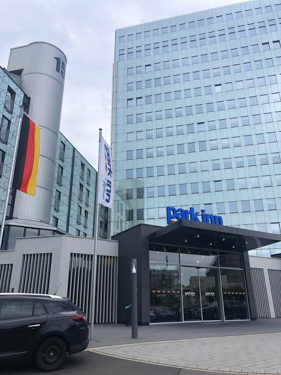 Утром я проснулась от странного звука, казалось что- то капает и я не ошиблась, протекал потолок в коридоре напротив двери в ванную. Что случилось? Нас заливают сверху или это проблемы с встроенным кондиционером? А ведь так хотелось выспаться! Специально взяли 2 ночи в отеле, чтобы не нестись с утра пораньше в очередной город, а сделать небольшую передышку, ну вот сделали))) пришлось звать горничную, она развела руками и сказала вызвать техническую службу. Пришлось бросить на ковровое покрытие газеты, которые впитывали воду и дать хоть какое то время поспать сыну. Когда сын встал позвонили на ресепшн, пришёл молодой парень техник, посмотрел, развёл руками, ушёл и вернулся с емкостью, которую поставил на пол - всё, типа вопрос решил))) теперь капает не на пол, а в сосуд!))) а нам говорят немцы педанты, хотя по большому счёту раздолбаи оказывается))) а чем дело кончилось- мы отключили кондиционер и часа через 2 капать перестало. Мы ушли гулять на весь день, а когда вернулись снова капало, это добрая горничная включила кондиционер, когда делала уборку!!! Жарко ей было видимо! Пошли вечером на ресепшн, они сказали что могут дать другой номер, но гарантии, что там не будет течь не дали, мы взяли ключи от другого номера, он был этажом ниже и в самом углу с видом на помойку, отказались, решили спать с открытым окном и без кондея. Зато с прекрасным видом на телевизионную башню, да и вещи на одну ночь перетаскивать не хотелось.