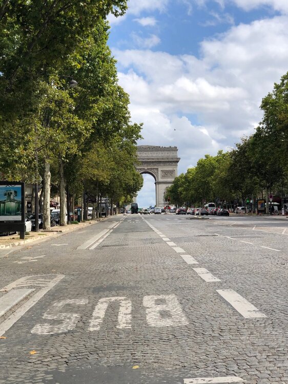 И вот 16 августа (прям ровно месяц назад!) с утра я начала собирать вещи. Часов в 11 сын пошел за машиной, это было недалеко от отеля. Я всё собрала и ждала. Выселение в 12, а он не возвращается. Списались, решили, что я сама вынесу вещи на 1 этаж и там подожду. Отнесла свои вещи на ресепшн, пошла за вещами сына, а номер уже картой не открывается, хотя время Х не наступило, ну было еще минут 5) Пришлось идти на ресепшн и на своем "прекрасном" английском объяснять ситуацию))) Карту продлили и вещи я забрала! Минут через 10-15 приехал сын на черном Мерседесе, который я назвала Геннадием, по первым буквам его номера - GN))) Мы загрузились и потихоньку поехали. Было страшновато, потому что сын год не сидел за рулем и выезжать сразу в центр Парижа - такое себе))) Я не вожу машину, но поняла, что в Европе много нюансов и правила и знаки дорожные могут отличаться, да и навигатор у Геннадия иногда говорил одно, а по факту оказывалось другое. Поэтому мне была доверена роль штурмана! Следить за всеми поворотами и съездами и у меня даже получалось) Хотя машина оказалась очень умная и бортовой компьютер помогал постоянно. Нам повезло и навигатор построил маршрут таким образом, что прям в центр ехать не пришлось, мы сразу повернули в сторону Дефанса и перед Сеной свернули на объездную дорогу по направлению к Диснейлэнду. Город оставался слева, мелькнула Эйфелева башня, улыбаясь нам вслед, рядом с ней летал огромный воздушный шар. Париж, мы еще вернемся! А пока мы направляемся в Реймс! Город, в соборе которого короновали практически всех французских королей на протяжении тысячелетия!!! Когда мы наспех продумывали маршрут от Парижа до Берлина, я посмотрела на карту и сразу написала сыну - Реймс, Люксембург, Трир, Кёльн, Лейпциг - Берлин. И на удивление он согласился. И только один город мы поменяли в итоге, вместо Лейпцига поехали в Ганновер, так было просто короче))) Но все эти города (кроме Берлина, понятно) я не видела ранее, а сын год назад уже был в Реймсе, поэтому отель забронировал тот же, в самом центре. А еще я никогда не путешествовала по Европе на машине. Ну если не считать экскурсии из Праги в Нюрнберг на минивэне с водителем-гидом. Это совсем не то ведь) А тут я прям вспомнила наши Туртрансовские поездки по дорогам Франции, Германии, такие знакомые города мелькали на табличках по пути, а за окном поля, просторы, коровки-коровки... Кра-Со-Та! Только вот сидишь ты не так высоко, как в автобусе, а гораздо ниже, поэтому снимать из машины не получается так, как из автобуса. Но есть и плюс - лобовое стекло прямо перед тобой!