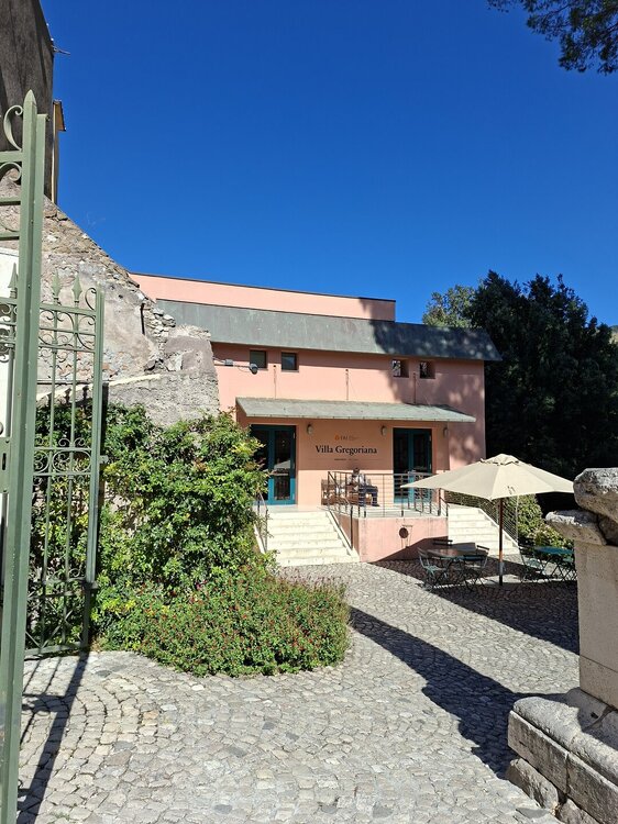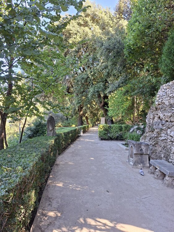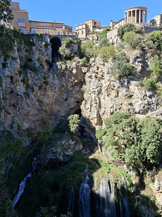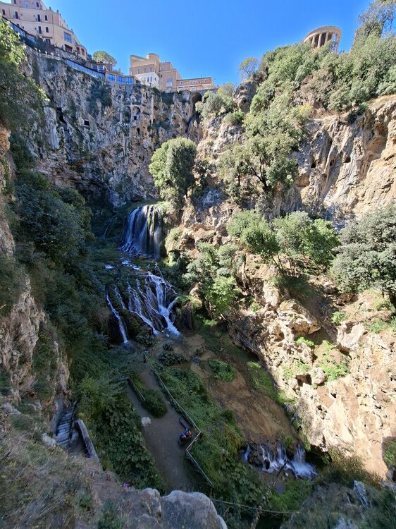 Марина, я тебе не рекомендую виллу Грегориана! Была там в прошлом году, так получилось, что волею случая нас привезли в последний день в туре в Тиволи. На виллу д'Эсте мы изначально не записывались, и решили самостоятельно прогуляться по Тиволи и посетить виллу Грегориана. Елена Зайцева предупредила, что туда надо идти спортивным людям, но я этого не слышала, мне девочки потом сказали. Там вход с одной стороны ущелья, а выход - с другой, надо сначала спуститься на самое дно, а потом подняться на другую сторону. Конечно, там есть дорожка для туристов, и не одна! Красивые виды кругом, особенно на водопады, но подъём очень крутой, хотя и по тропинке. Если бы я знала изначально об этом - точно не пошла бы туда!😄 Уже на середине пути силы меня стали покидать, но возвращаться назад не было смысла, пришлось идти вперед! Сначала шли вот такие дорожки Потом вышли вот к такому водопаду. 20251003_123558.mp4 Затем дорога начала петлять и спускаться вниз. Виды кругом, конечно впечатляющие. А подняться надо было вон к той ротонде, что находится справа. Представляешь, какой путь надо пройти?! Видишь внизу дорожка, туда надо спуститься, а потом подняться на самый верх. 20251003_125742.mp4 Поднялись, как я уже писала, с другой стороны ущелья. Там находится какой-то маленький музей, и есть туалетная комната. А затем прогулялись по Тиволи. Не знаю, было ли свободное время у тех туристов, которые пошли на виллу д'Эсте. Совсем не пожалела, что попали вместо Рима в Тиволи, хотя сначала расстроилась.
