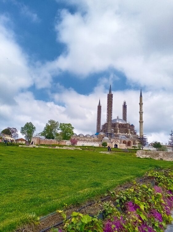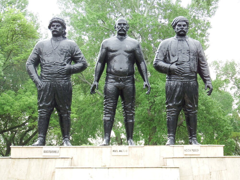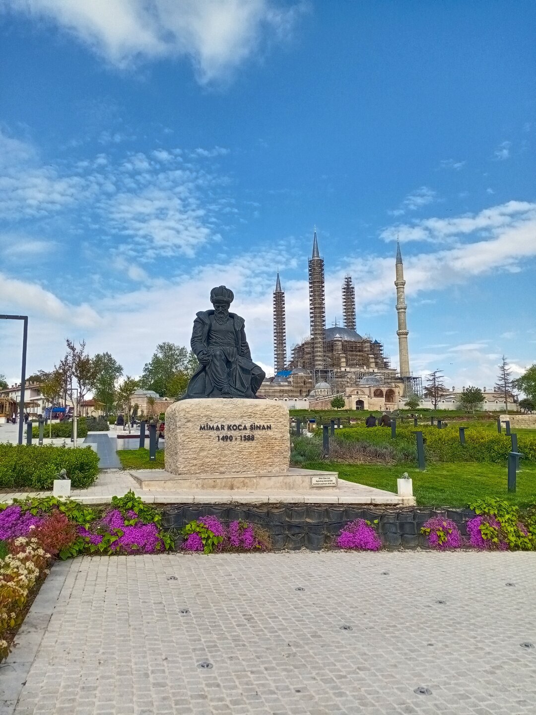 Эдирне - бывшая столица Османской империи, находится на границе с Болгарией и Грецией. Когда то в Эдирне был самый крупный Османский дворец, а сейчас там одни развалины, сохранилась только башня Правосудия. По легенде, именно в Башне правосудия султан Сулейман написал свод законов Османской империи. Самая известная достопримечательность Эдирне - Селимие, красивейшая мечеть, включённая в список объектов Всемирного наследия ЮНЕСКО, и шедевр османской архитектуры. Правда в наш приезд она была на реставрации, вся в лесах. Памятник Мимару Синану в Эдирне В районе Караэгэк Эдирне находится железнодорожный вокзал, который в настоящее время является частью Университета Эдирне. Здесь есть старый локомотив, который создает идеальный фон для фотографий. В середине перекрестка установлена декоративная композиция из трех больших горшков, символизирующая, что Эдирне был одним из самых крупных центров керамического производства в Османской империи. Ежегодно в Эдирне проходит один из старейших в мире спортивных турниров – Кыркпынар. Это традиционные соревнования по масляной борьбе, чья история уходит корнями в XIV век.