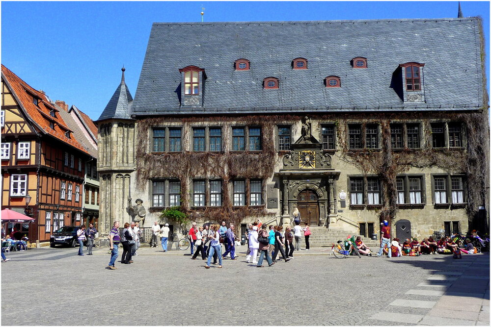 3. Нальчик-Кведлинбург! Тур - "Вся Испания и Португалия". Город Германии под эгидой ЮНЕСКО. Есть и замок, и Ратуша, и свой герб. Есть также и статуя святого Ролланда! И даже -аптекарский огород, пивоварня и много фахверка.