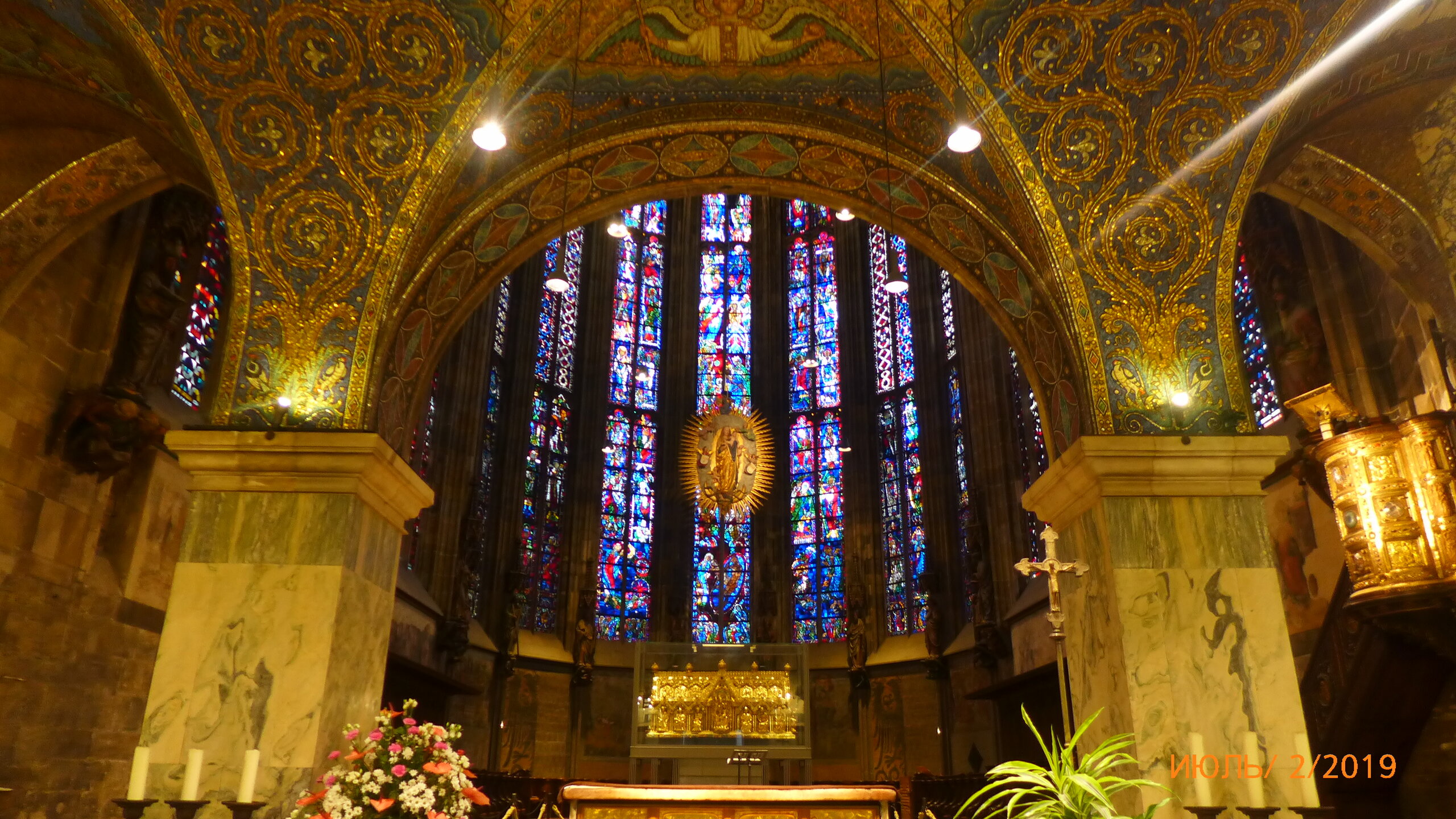 а -Аахен! Тур "Краски Бельгии и Нидерландов" Немецкий город, расположенный в 4-5 км от границ Бельгии и Нидерландов. Здесь - термальные источники и, соответственно, курорт с давних времен. Это город интересных фонтанов. Но, главное, это город государственности и силы со времен Средневековья. Кафедральный собор находится под охраной Юнеско. Здесь история начиналась 1200 лет назад. Многочисленные мозаики украшают Домский собор и высота хоров здесь -27 м.