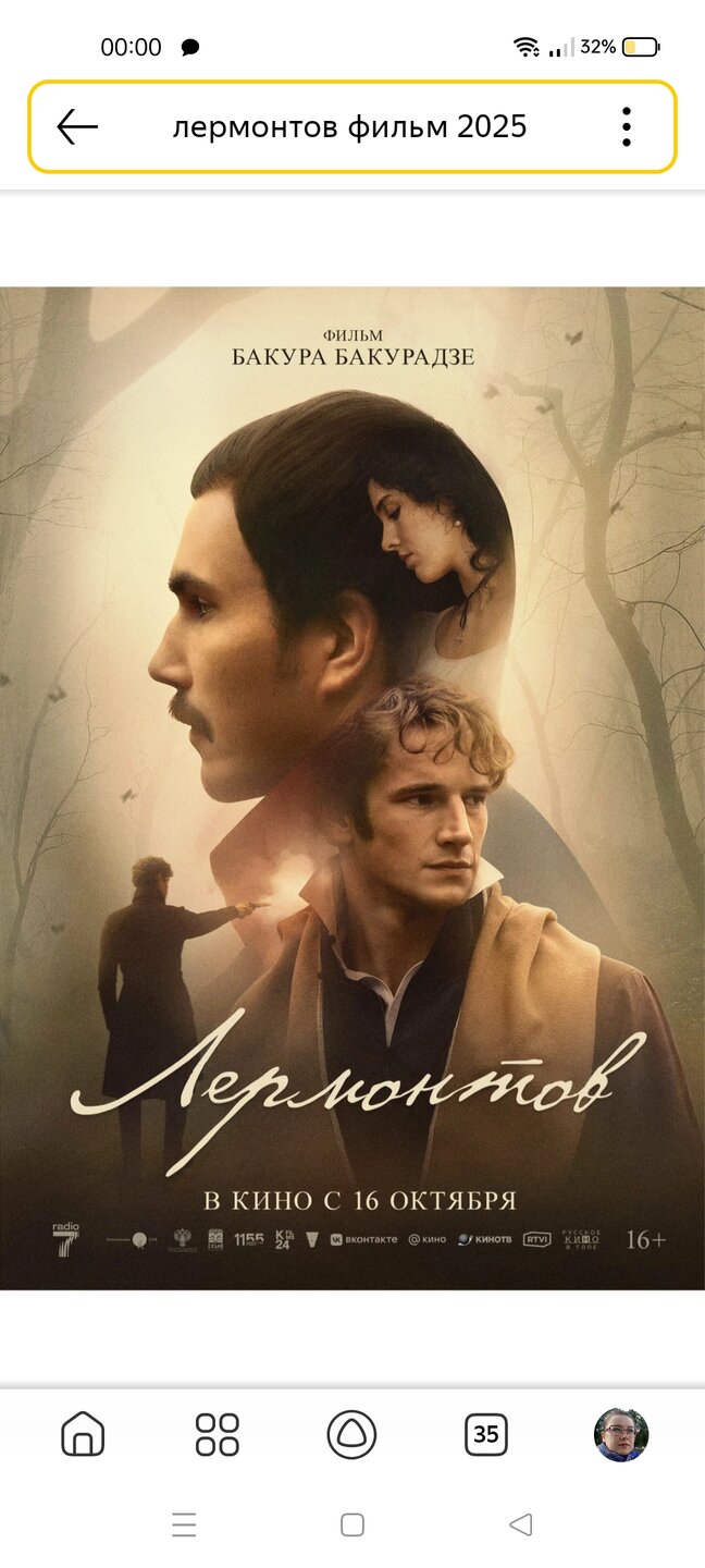 Когда в кинотеатрах шел фильм про Пушкина, то здесь был ажиотаж. А теперь фильм про Лермонтова и ажиотажа нет почему-то. Заведомо решили,что ерунда недостойная внимания или смутило,что исполнитель главной роли стендап-комик?😀 Я сходила сегодня. Он шел не во всех кинотеатрах,в одном уже закончился и вроде как остались дневные показы (одно время) только в одном кинотеатре. С мюзиклом о Пушкине и с динамикой того фильма нельзя сравнить. Здесь совершенно другая стилистика. Лермонтов за весь фильм сказал меньше слов, чем Пушкин за 5 минут))) Но это наш великий поэт и по моему мнению надо смотреть фильмы о наших выдающихся личностях. Говорят озвучка плохая. А именно такая и подходит. Это последний день жизни. Здесь не нужны громкие звуки. Здесь все сливается с природой и бурей в душе, которая не выходит из героев. Всё внутри них. Монотонно-тягучий, осенний. С масштабными картинами природы. Немного похож на медленно текущий фильм про Онегина. Был, конечно, один момент , который выглядел странно. Но не так странно как в последнем Дракуле табличка с пересечением грацы Франция-Румыния и отсылками и прям повторами из Парфюмера. Про Лермонтова, наверно, нельзя в залихватски стиле снимать. Меня как-то занесло в кинотеатр (в нулевые ещё) на творческую встречу с Н. Бурляевым и показ фильма про Лермонтова с его участием. Мне кажется тот тоже был скучноватым.- Вы не поверите...