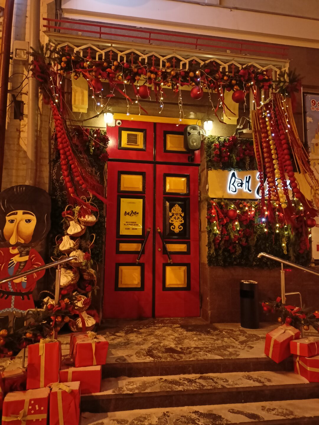 У театра кукол жар-птица и рыба-кит, конек-горбунок У ресторана грузинской кухни ёлка из хинкали Армянский культурный центр украшен слабовато , но зелёная гирлянда воочию лучше смотрится Вход на пешеходную Дзержинского