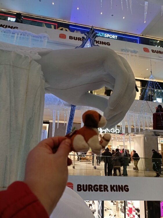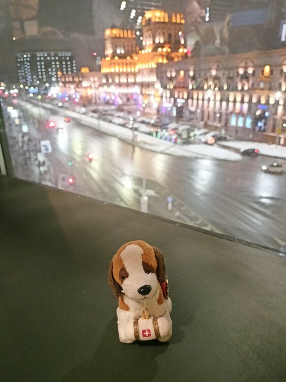 Барон нынче не стал на каникулах засиживаться дома , а отправился аж в другое государство - ЖД и без загранпаспорта! Проинспектировал все новогодние разности и готов явить себя в новогодних инсталляциях Минска, Бреста, Гродно и Витебска. Часть 1. Минск. 3 января Хозяйка, неси драники!!! Вау, косточка, специально для меня. Мясо мне, а тебе жидкий супчик. Худей давай, а то как меня будешь возить Первая минская ёлочка. Барону и хозяйке она угодила. А домики то, домики какие славные 4 января. Хозяйка, хватит спать, пошли красивости смотреть Ты опять вставила этот компромат на меня. Тебе повезло,что у меня лапки, иначе тебя бы выставил. У символа года уши проверил - серных пробок нет) Хозяйка! С синей козой мне как то не комильфо, пойдем скорее на ёлки. Я у нее на языке, она сейчас слопает меня Подозрительная собака с фонарём. Как бы мне никуда не провалиться. Как вытаскивать то будешь Так, мне кокошник великоват. Ну я же знаю,что у тебя тоже есть фото с ним и тебе он как раз. Розовые шарики, хозяйка, а более подходящие для мальчика шарики есть? Эх, хозяйка, с испано-итальянскими видами даже если в Минске, то все равно меня запечатлей А что мне только пить? Где едаааааа! Где еда? На ярмарке? Так чего мы ждём? Вперёд! Уф, наелся, пошли теперь греться и носки теплые покупать, а то заболеешь и сидеть мне с тобой в номере Мама дорогая , что это? Меня сейчас за шкирку возьмут. Мне страшна аааааа Хорошо поел, тяжёлый, не смогла меня властная рука поднять) Хозяйка, а ты то вот совсем не похожа на снежную королеву, она вон какая - можно в обморок упасть от ее величия. Мне кажется я хорошим помощником был бы у неё. Что, что? Хозяйка, плохо слышу. Кормить не будешь меня? Я все понял и осознал - ты лучше, хоть у тебя и нет такого платьишка Хм, призабавный ассортимент в магазине. Ценник тоже) У хозяики нет чемодана, а в руках она это не потащит, ура) Хозяйка, ну что это. Не успели праздники наступить, а нам тут напоминают об огороде Пошли уже обратно на ярмарку, за глинтвейном, носки купили, погрелись, ёлка уже засияла (Уф, с телефона совсем тяжело писать и вставлять фото, так что без особого форматирования)