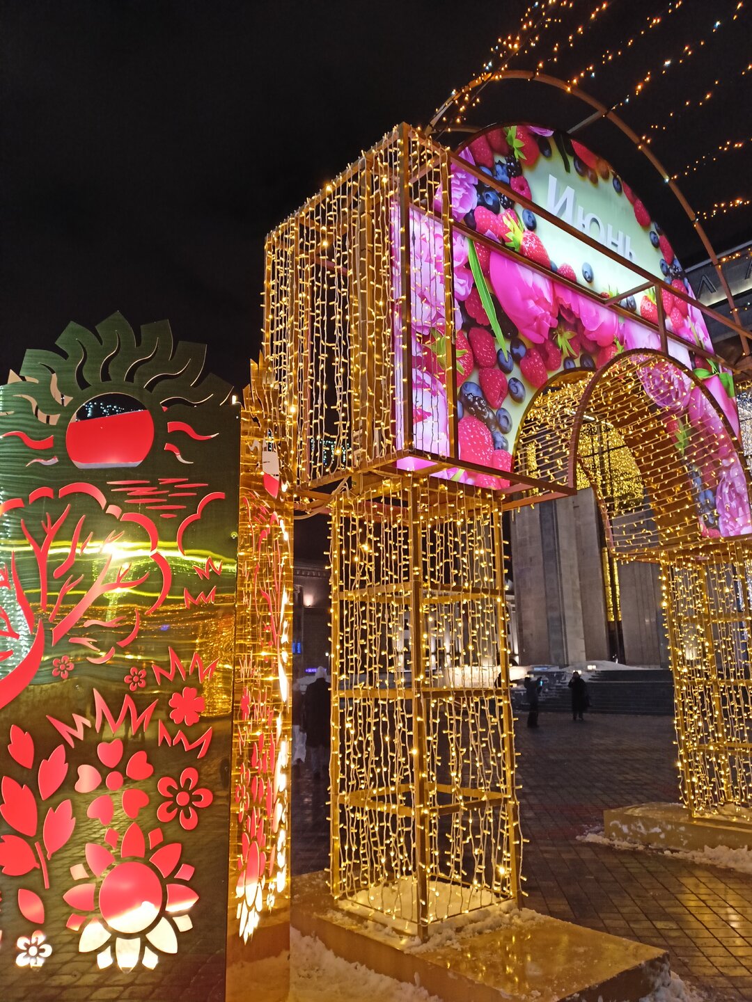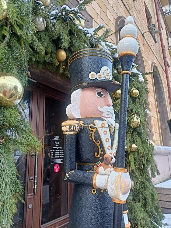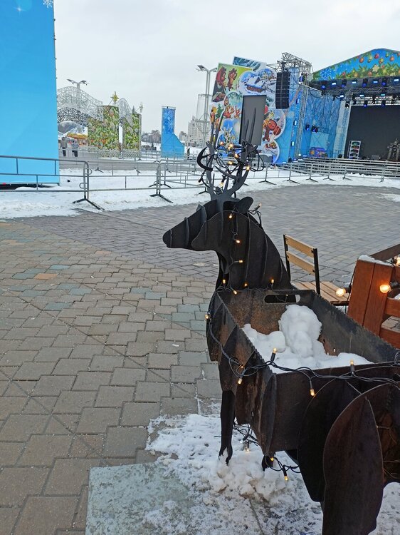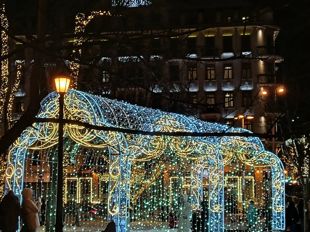 Ну и ещё новогодних видов Москвы. Барон крепко спал в сумке))) Метро Краснопресненская и зоопарк, ВДНХ, ёлка в павильоне Армения