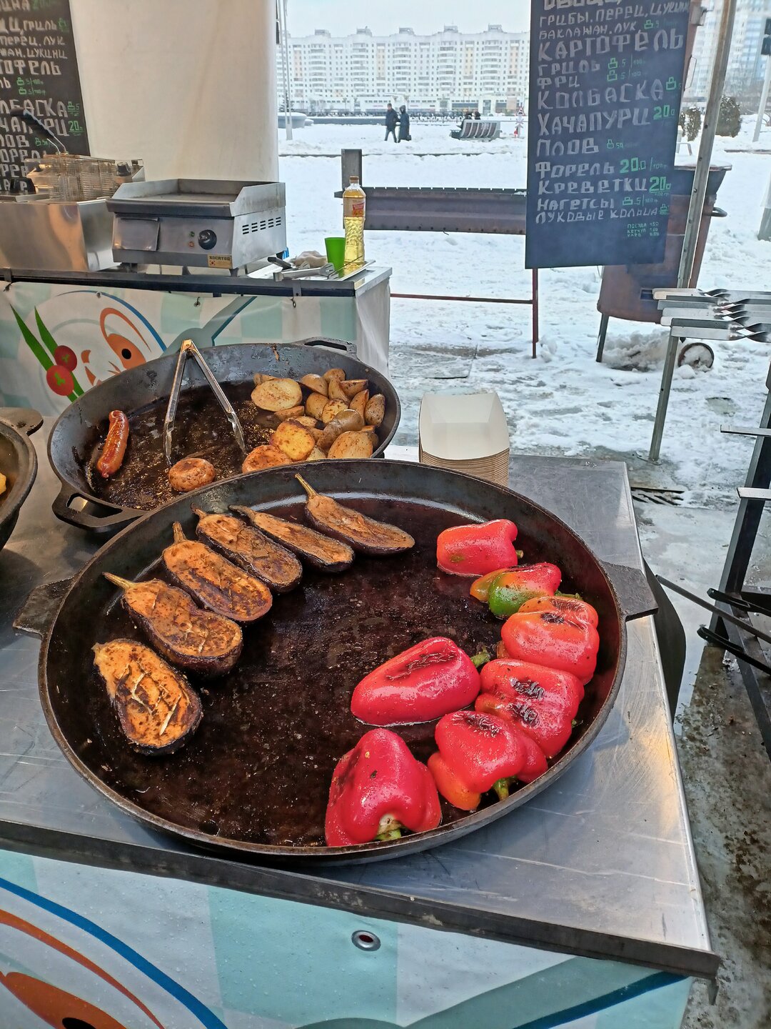 Москву заметает. Но нас с Бароном приютил хлебосольный павильон Армения. Тут даже метро занесло, а я сетую на свои карманы, полные снега) Щ