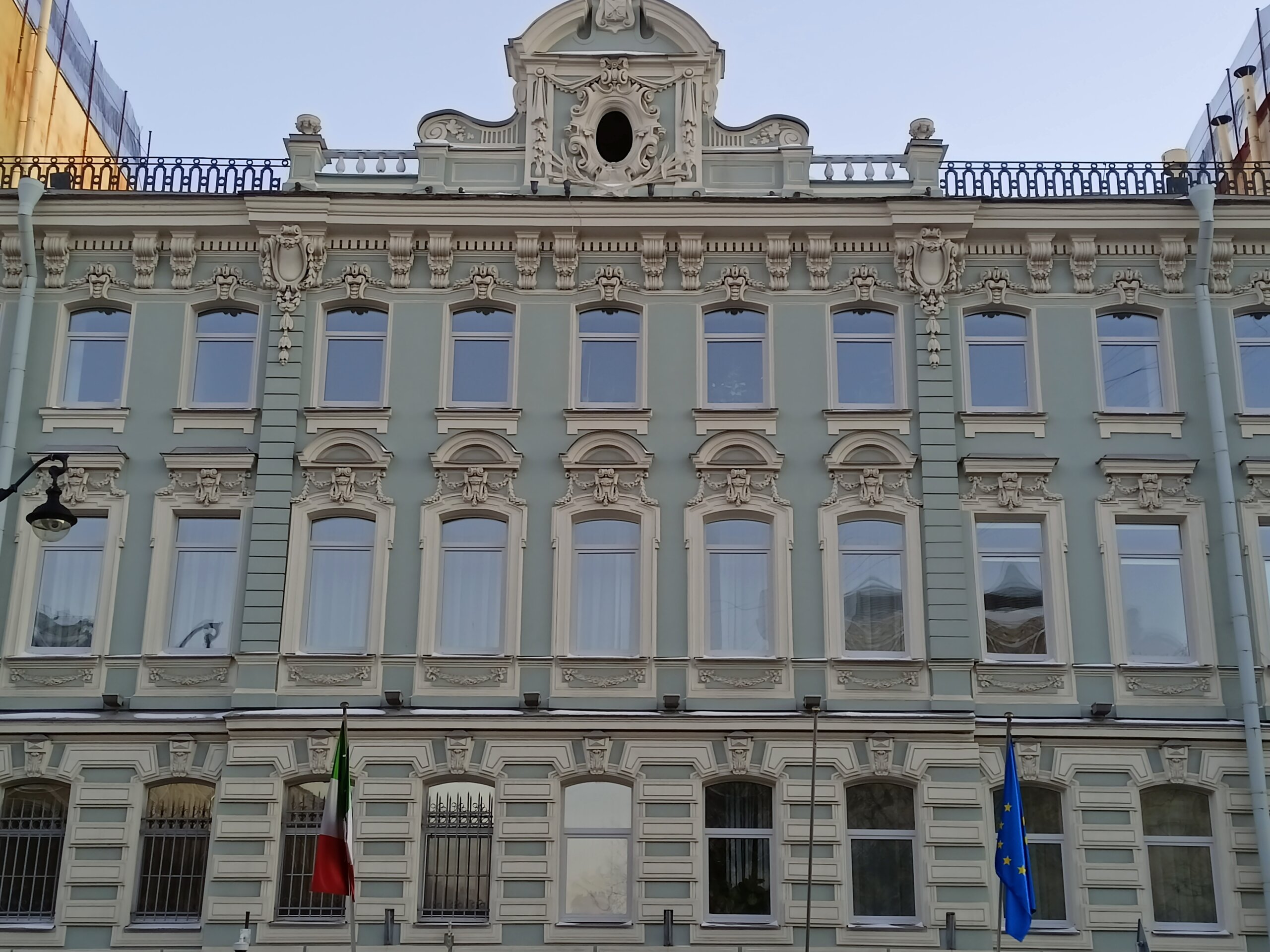 Самая главная традиция у меня - Львиный мост. А раз у меня вечернее мероприятие связано с Мариинкой, то почти 2 часа в запасе у меня есть. Главная неожиданность этой зимы - все гуляют по рекам и каналам. Даже на Неве в темноте увидела лыжника. Впервые такое массовое прохождение наблюдаю, хотя это 4-й раз в зиму я приезжала. У Львов я тоже решила хоть прям чуток встать, но, слава Богу, самая нижняя ступенька была для меня очень высокой. Прям у львов, рядом со входом в Юсуповский сад дворца на Мойке посетила столовую и хорошо подкрепились. Хоть она работает до 19 часов, но они намеревались закрыться в 18-15. Поэтому я не стала рассиживаться. На стенах были картинки из гаремной жизни) А рядом со львами ещё и итальянское консульство с заветным флагом)