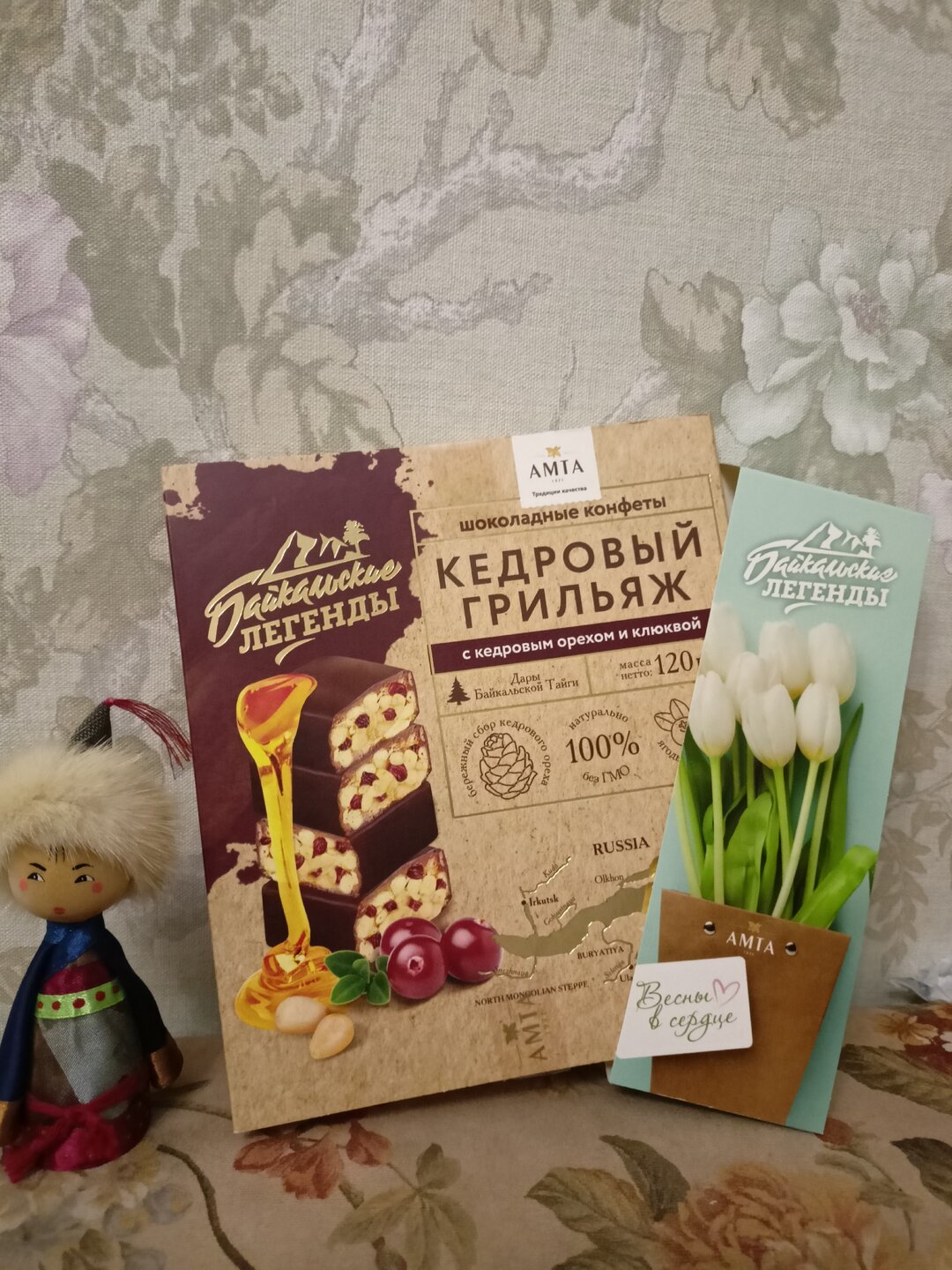 Ну раз даритель настаивает) Валерий подарил конфеты. Таких я не ела. Богатые кедровым орехом) Бурятская куколка. И карликовый омуль-ручка - прелестно и презабавно. Спасибо