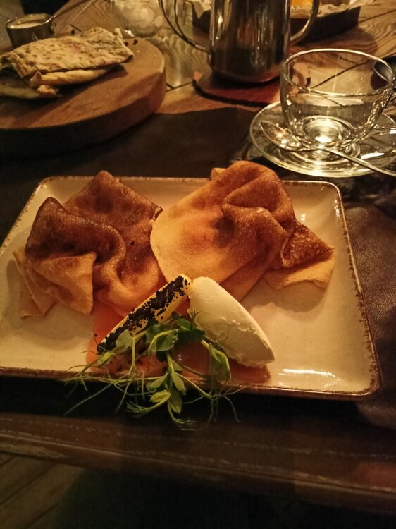 День буквы П и я про Пятигорск. Из всех городов любимейших КавМинВод именно в Пятигорске я была всего лишь один раз - встреча Нового 2024 года в туре с ТТВ. В четверке городов он уверенно расположился на третьем месте. Бесспорный лидер - Кисловодск с его огромнейшим и интереснейшим парком, на втором - первая любовь КавМинВод - Железноводск. В Пятигорск я прибыла из Кисловодска, где самостоятельно провела 5 дней и меня провожал Эльбрус. Вечер 30 декабря нам был предоставлен в самостоятельное использование. Я , о ужас, пошла пешком в город от отеля и поужинала в "Печорине" И неожиданно прям из города виден Эльбрус На 31 была назначена обзорная экскурсия дом Лермонтова. На новогодний ужин не ходила, поэтому часов до 9 провела в городе, купив себе десерт и еду в номер. Обед был групповой, а на ужин сходила к Гукасову. Там же купила и на новогоднюю ночь А вода в Пятигорске - самая термоядерная) Смотри Собаку на сене. Правильно, почти про Барошу, только он мальчик) Соседка ушла с подругами своими на вечер и я предоставлена сама себе. Фейерверки смотрела из окна. Не ожидала, что так пышно будет. Одно дело когда мы в Сибири, а здесь все ведь ближе к линии. А 1 января группа отправилась в Кисловодск, а я гулять в парк. Легкий перекус в кафе "Оранжерея" А надо бы повторить - пошастать по парку и летом. Не Кисловодском единым же)