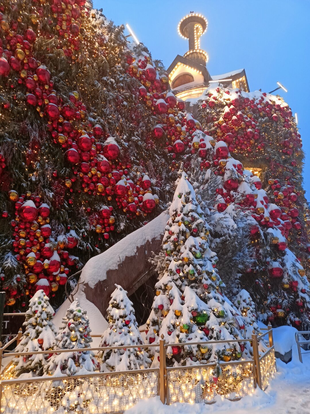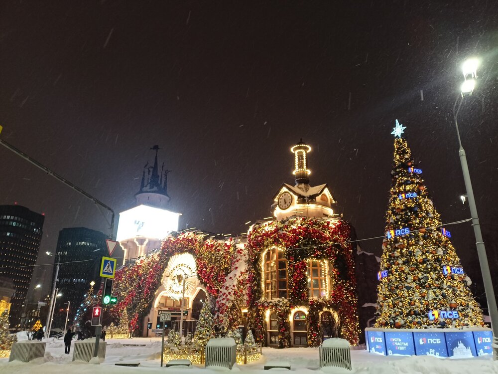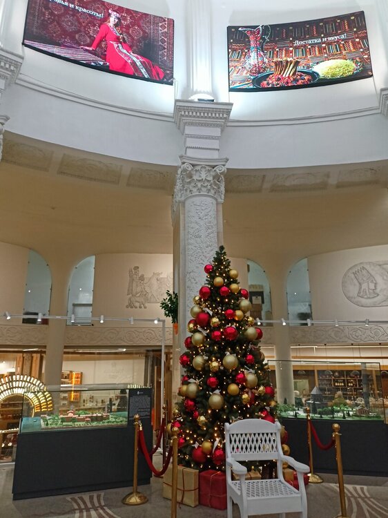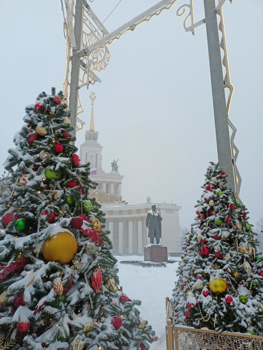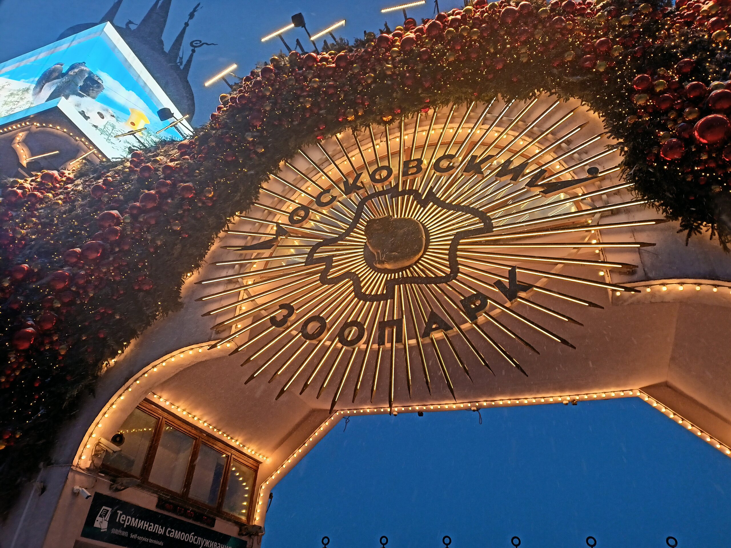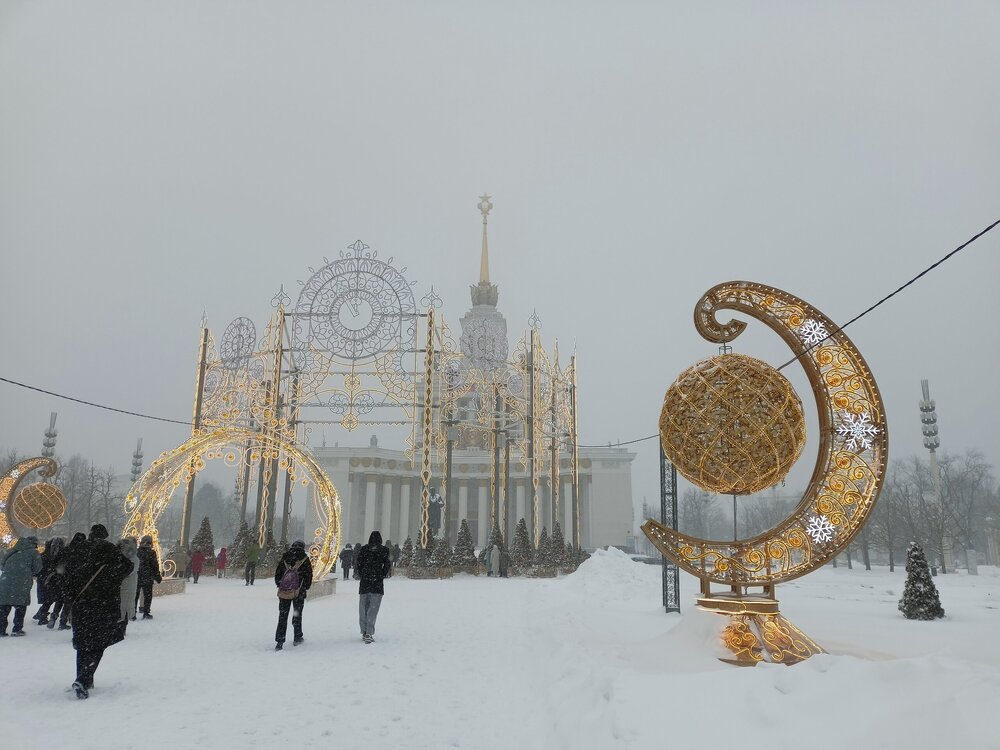 Ну и ещё новогодних видов Москвы. Барон крепко спал в сумке))) Метро Краснопресненская и зоопарк, ВДНХ, ёлка в павильоне Армения