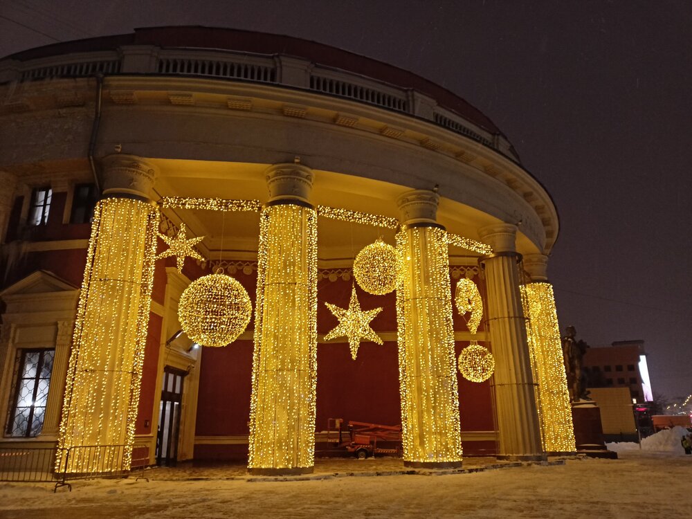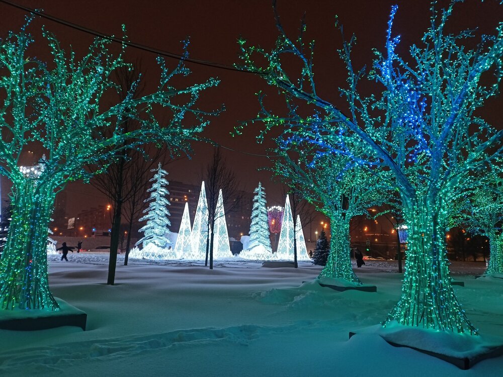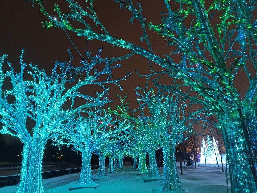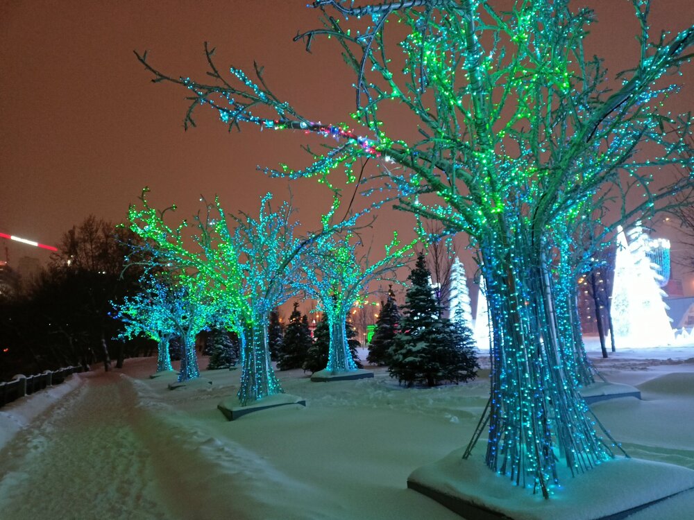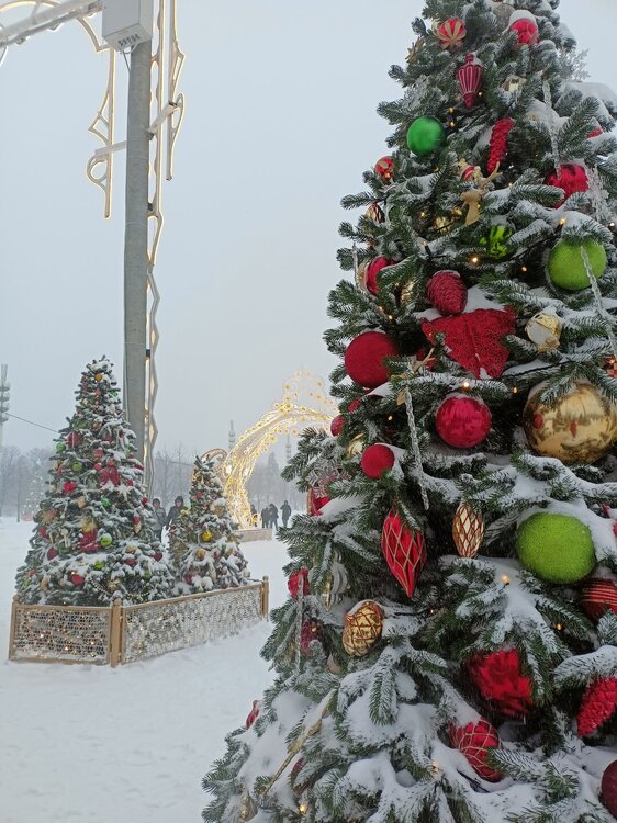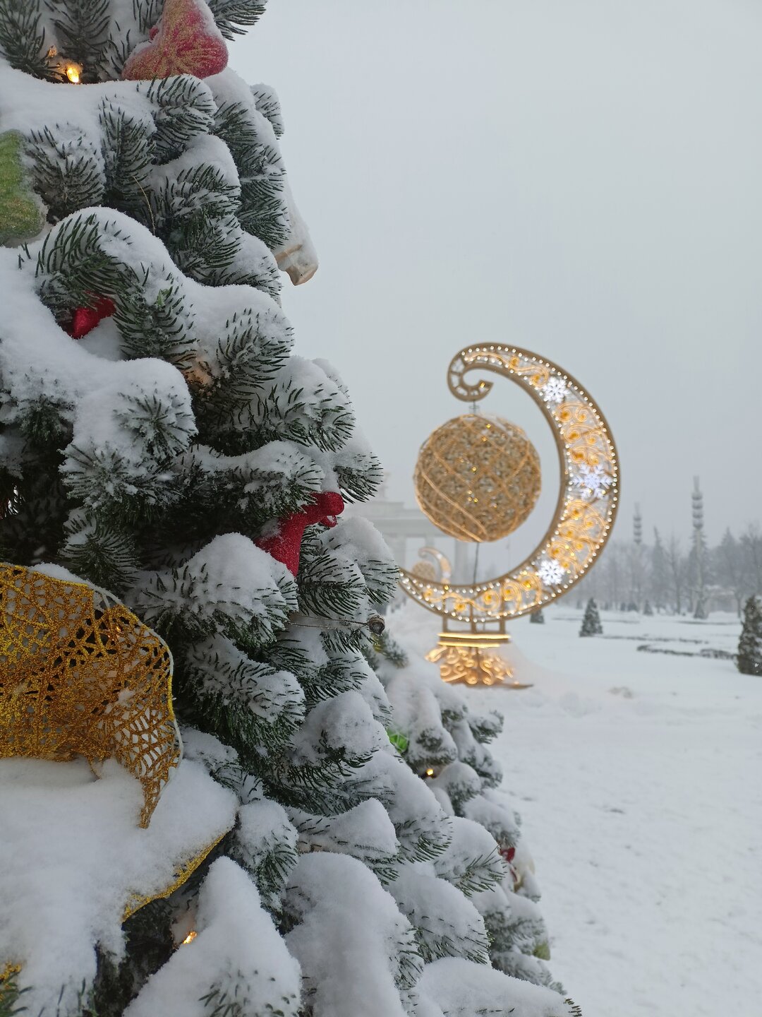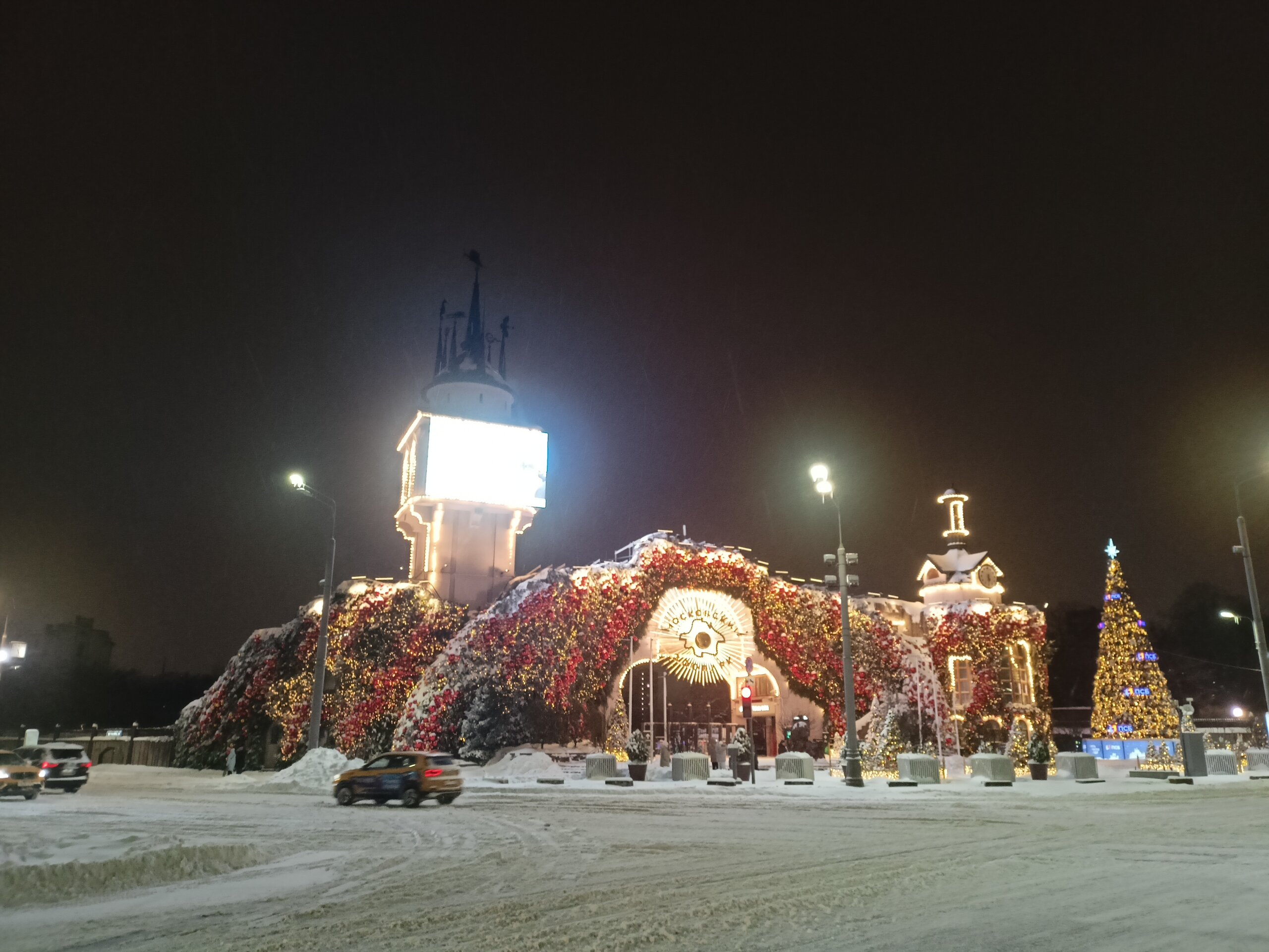 Ну и ещё новогодних видов Москвы. Барон крепко спал в сумке))) Метро Краснопресненская и зоопарк, ВДНХ, ёлка в павильоне Армения